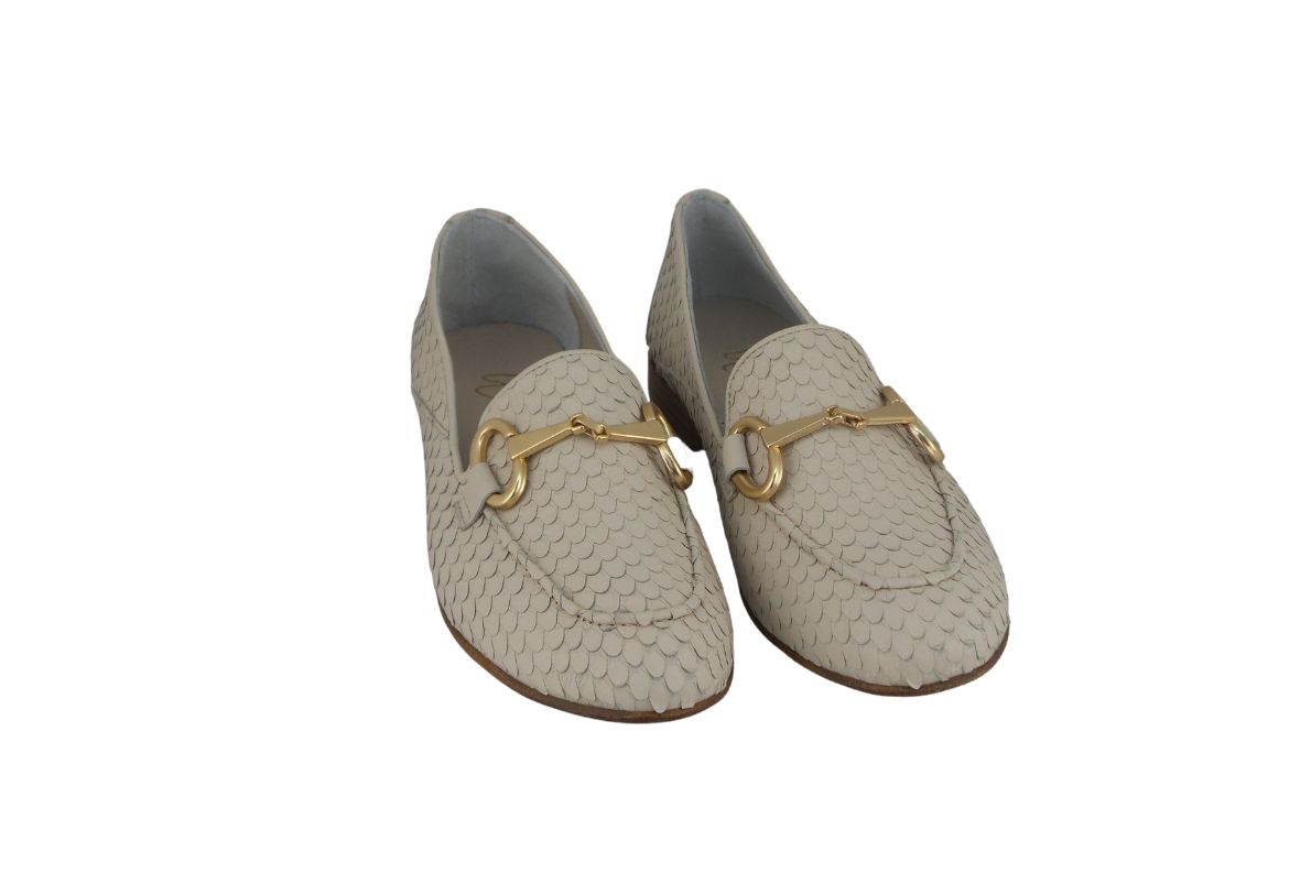 Cipriata, questa interpretazione di suede bianco si apre su mandarino ,