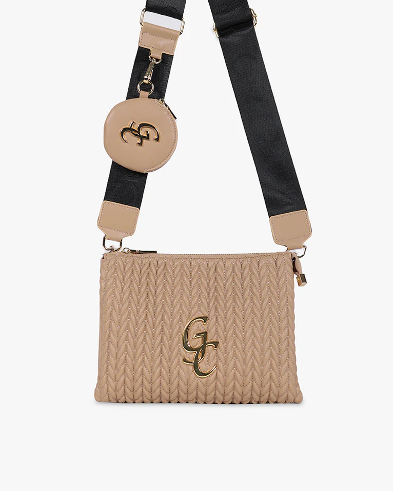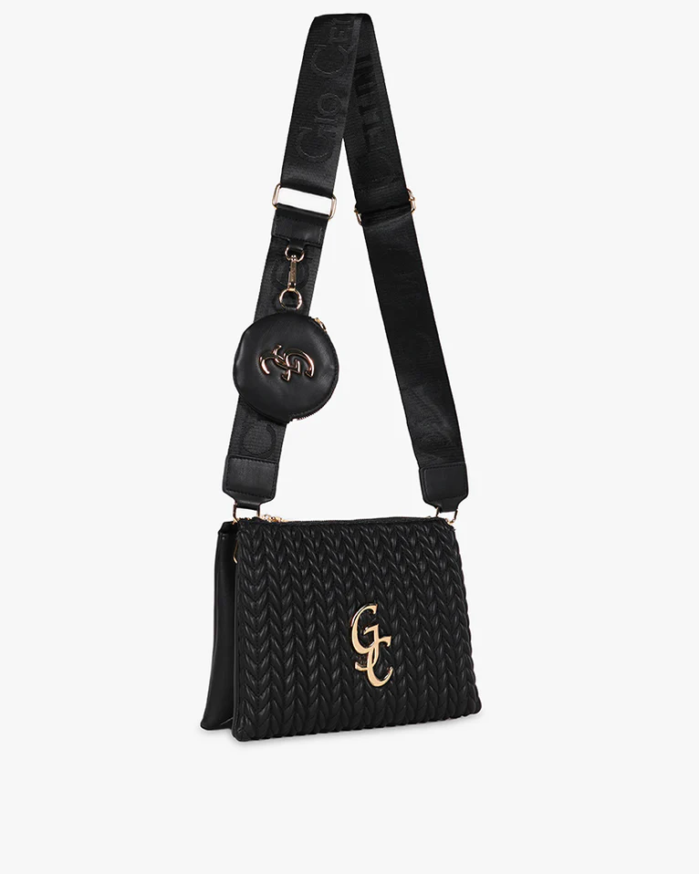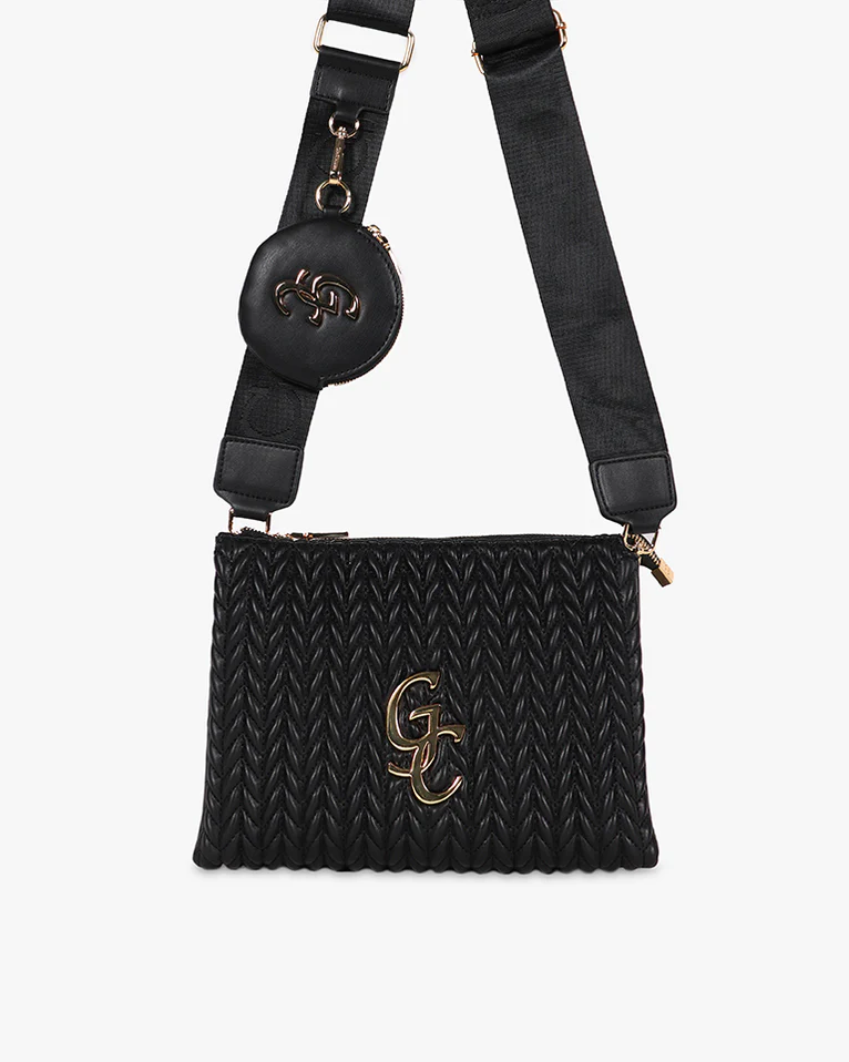 Pochette con trecce disponibile in beige e nero.