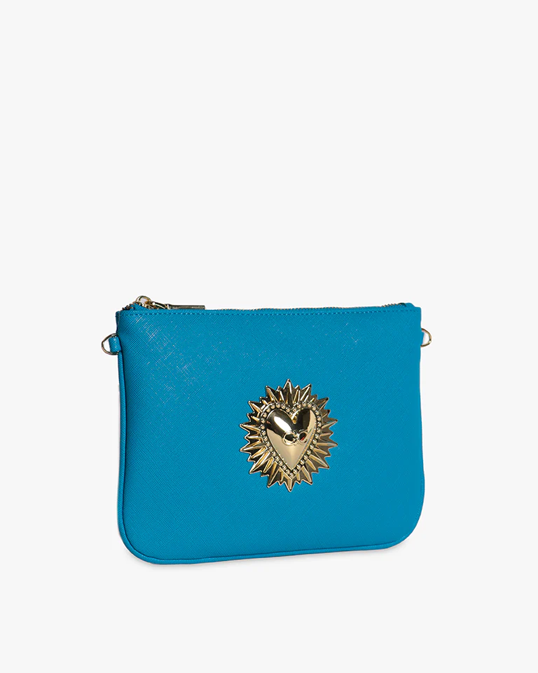 Bustina in saffiano disponibile in azzurro , corallo e nero.