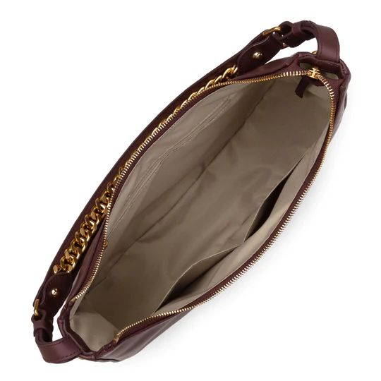 Questa grande borsa hobo ha una tasca principale con chiusura a zip,