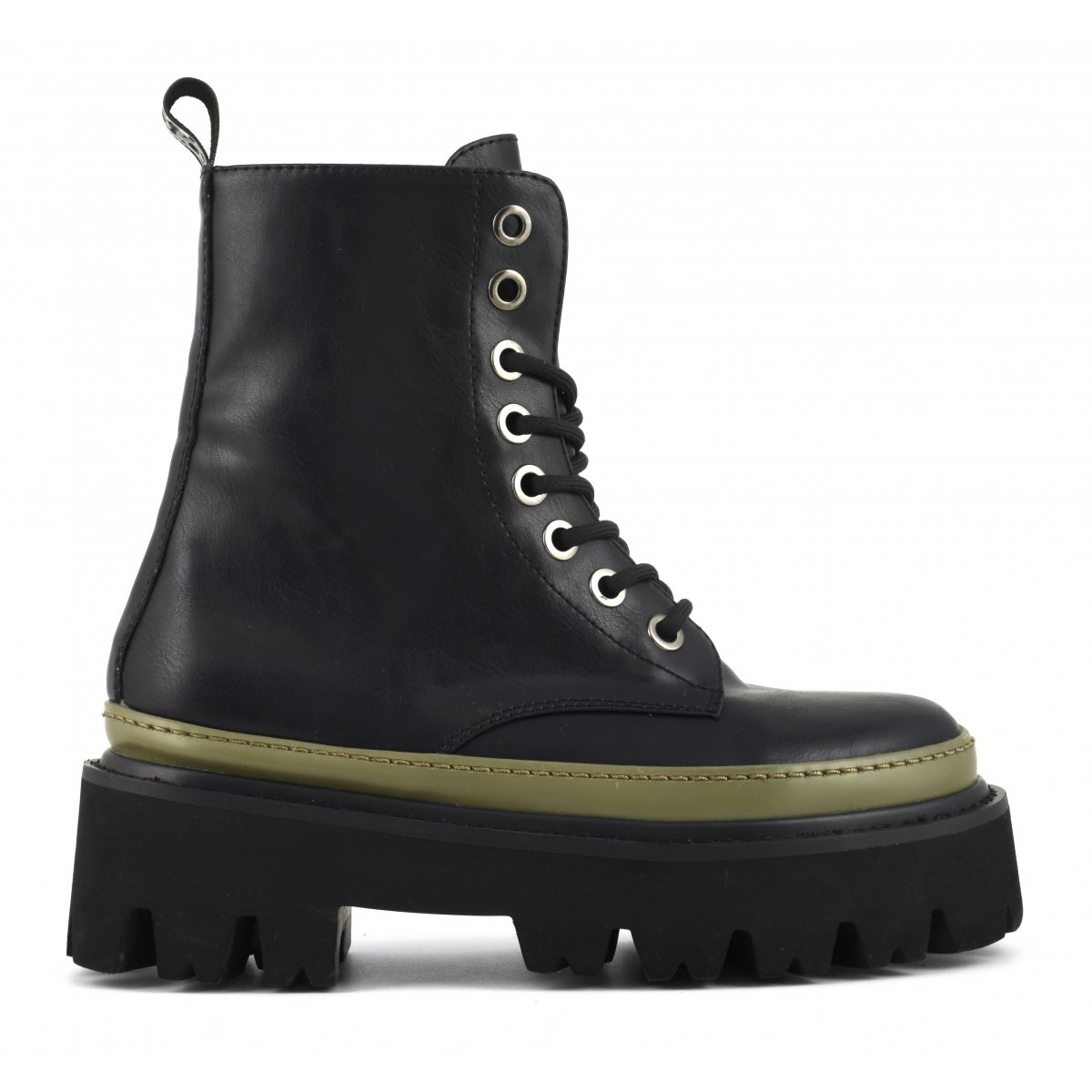 Anfibio con guardolo colorato, lacci e occhielli in metallo