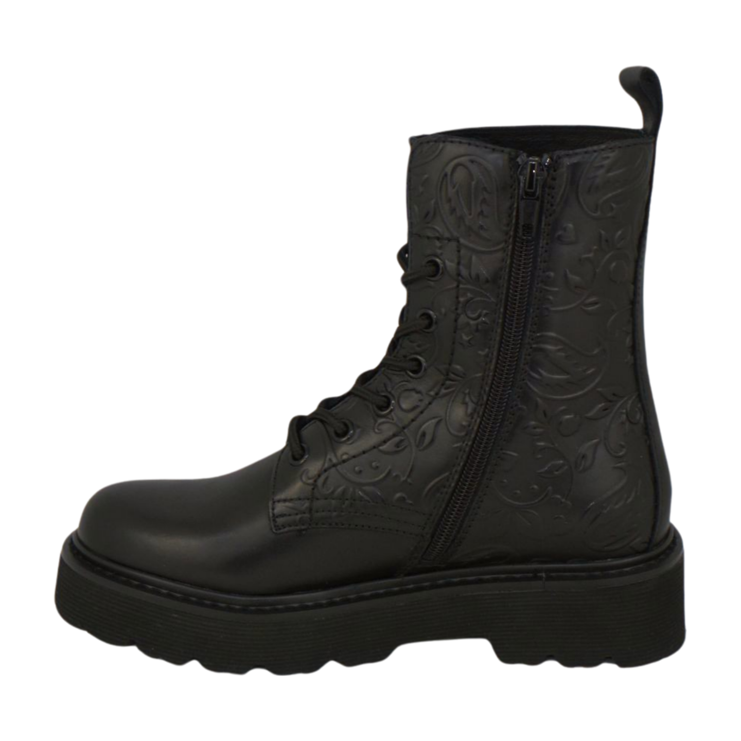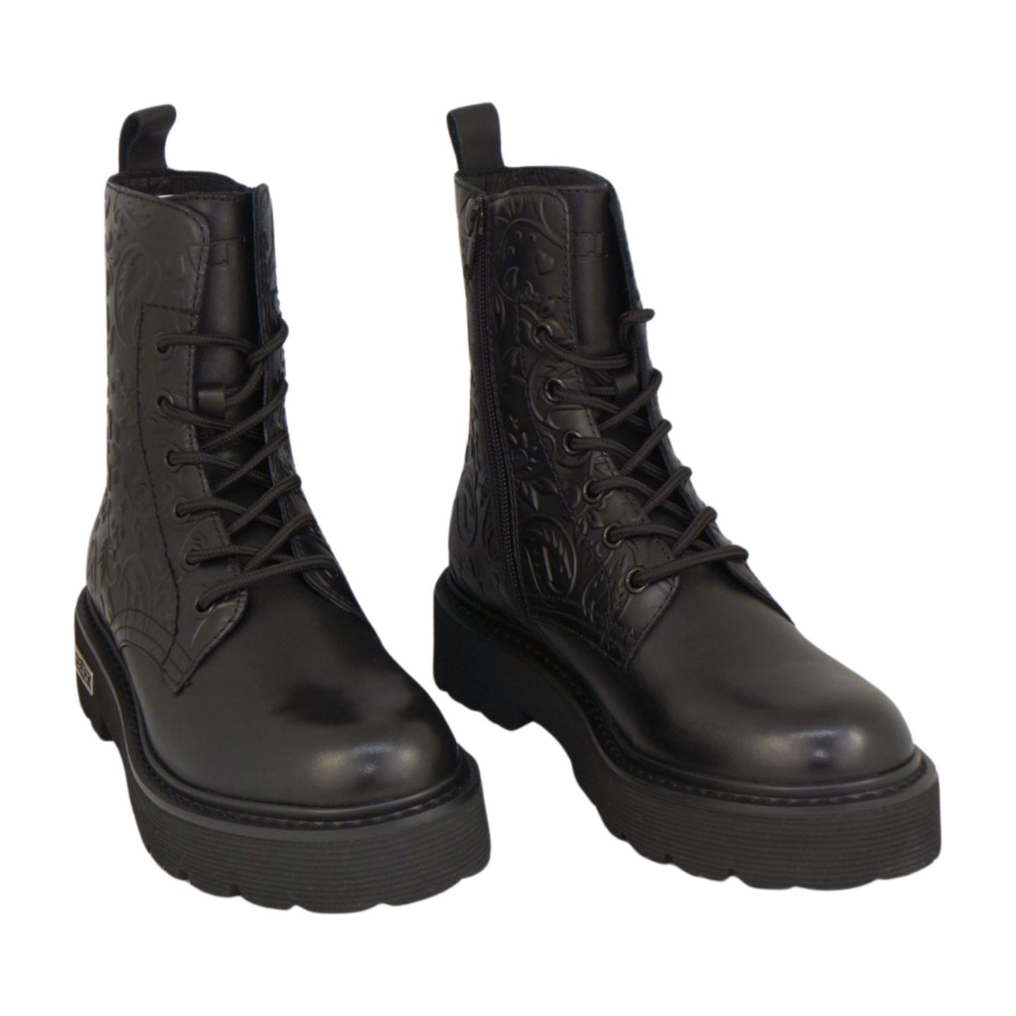 • Cult rivisita lo storico anfibio Slash in pelle nera impreziosendolo con la stampa in rilievo paisley tono-su tono.