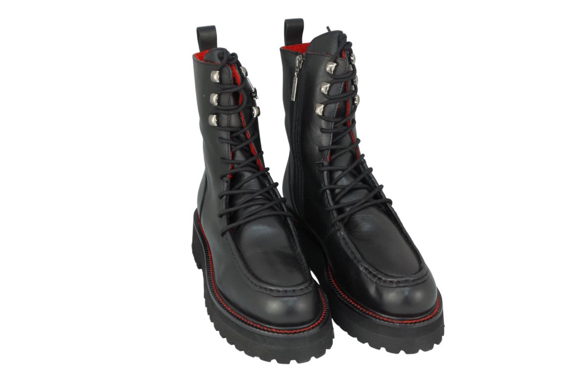 Emanuèlle Vee 422M-914-11 Anfibio In Pelle Donna Scarpe In Pelle Tacco Carro Armato 4 cm