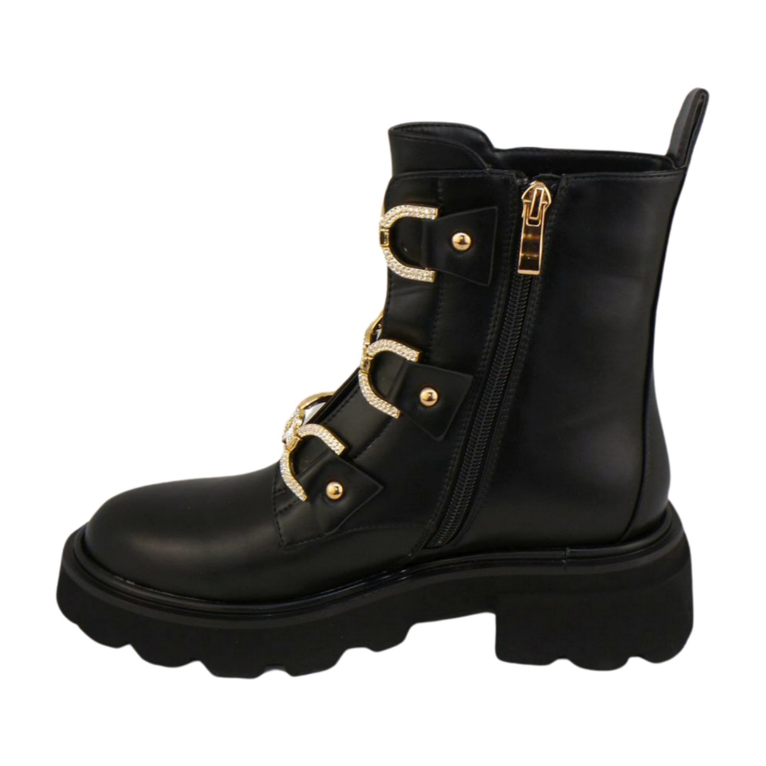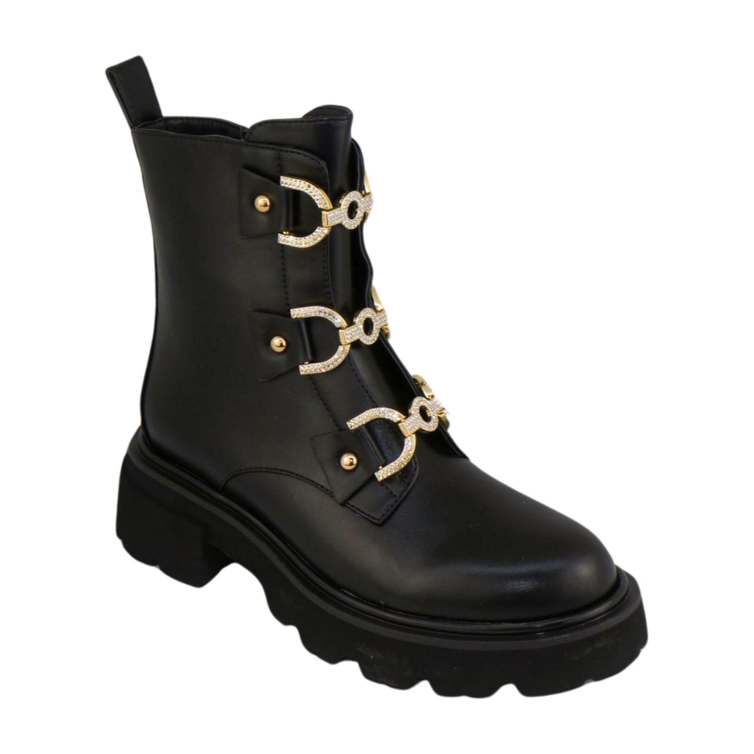 Con i biker Tosca Blu S394 Jennifer, sentirai l’eleganza e la sicurezza di una vera superstar. Realizzati in nappa sintetica nera e panna, questi stivali sono un’originale variazione sul tema dello stivale anfibio.