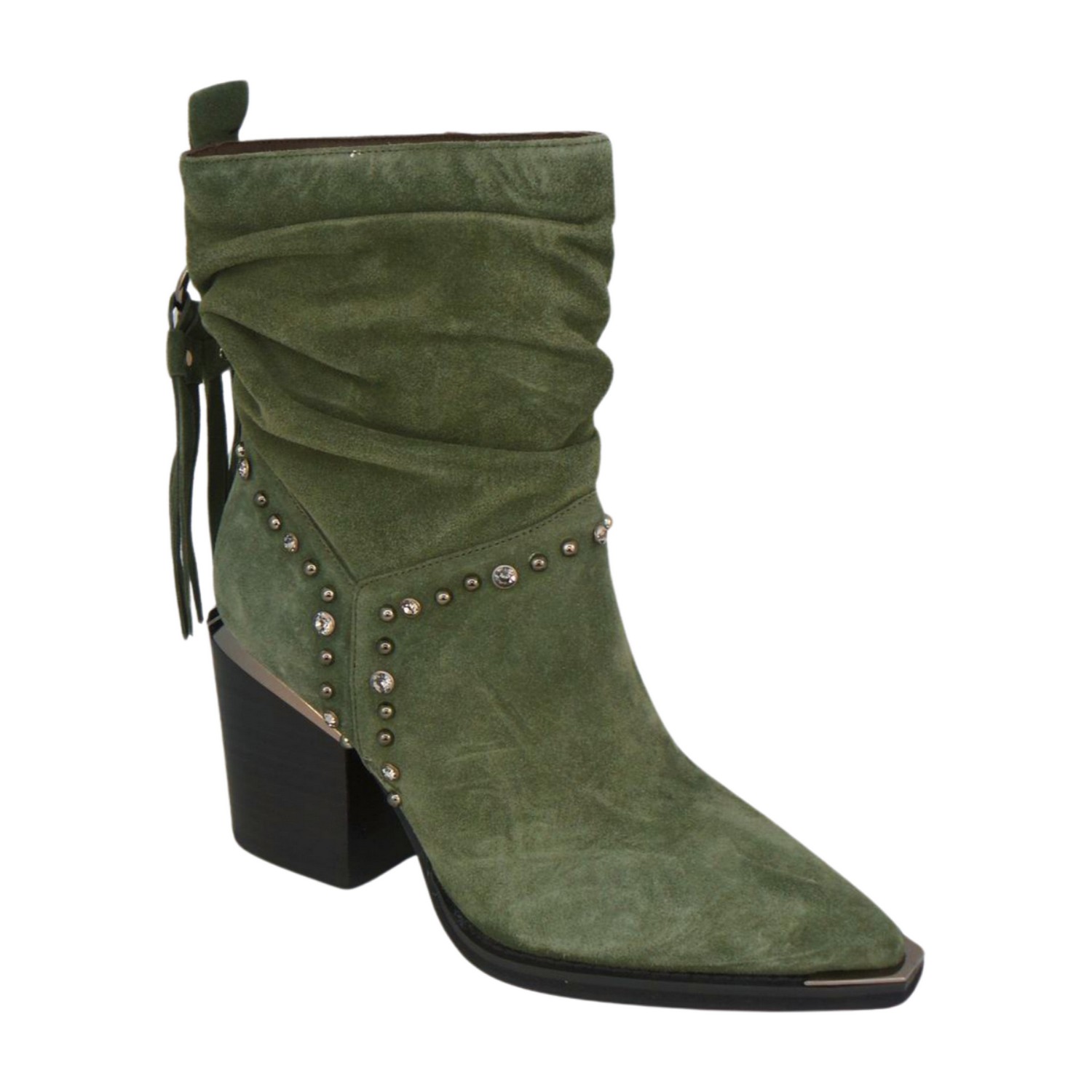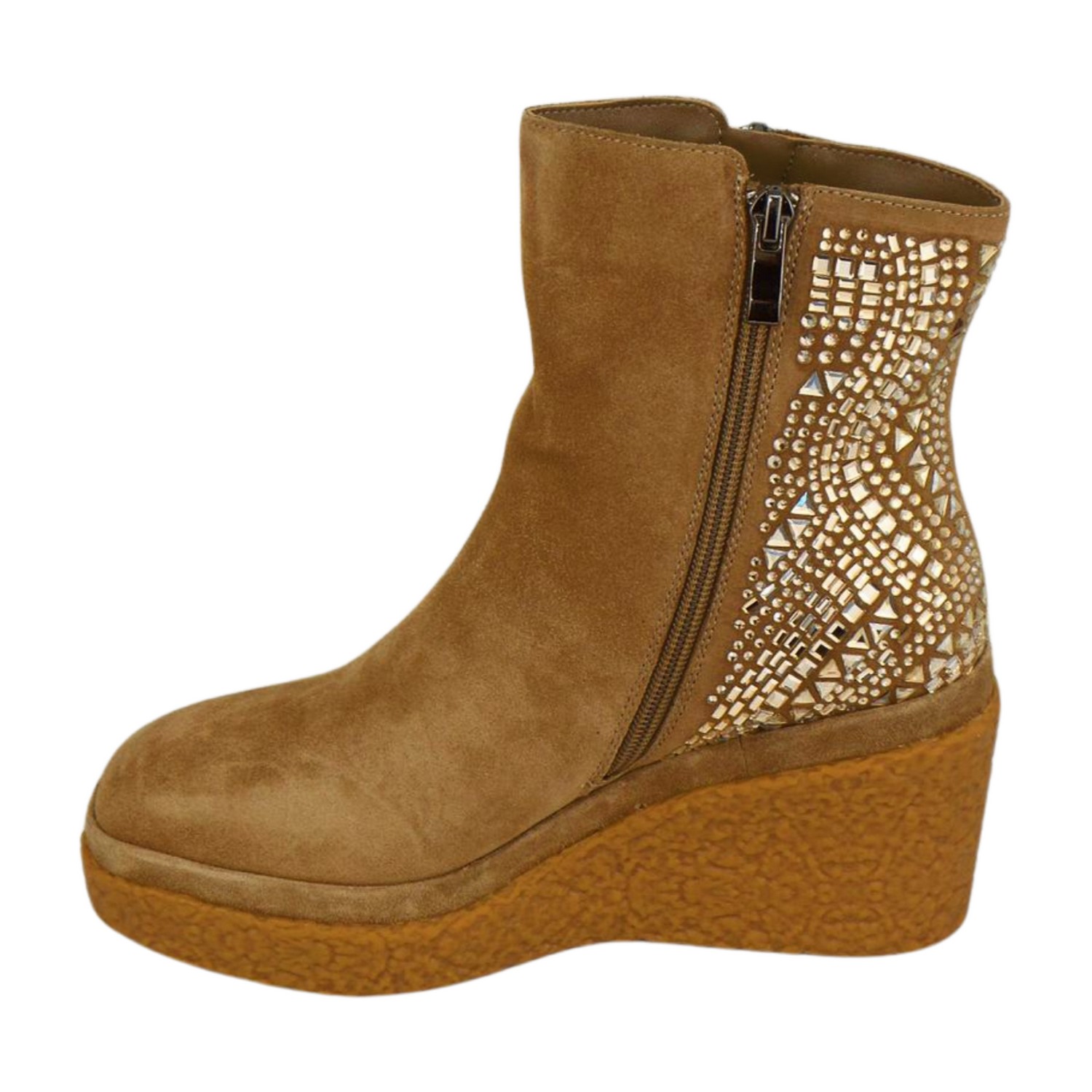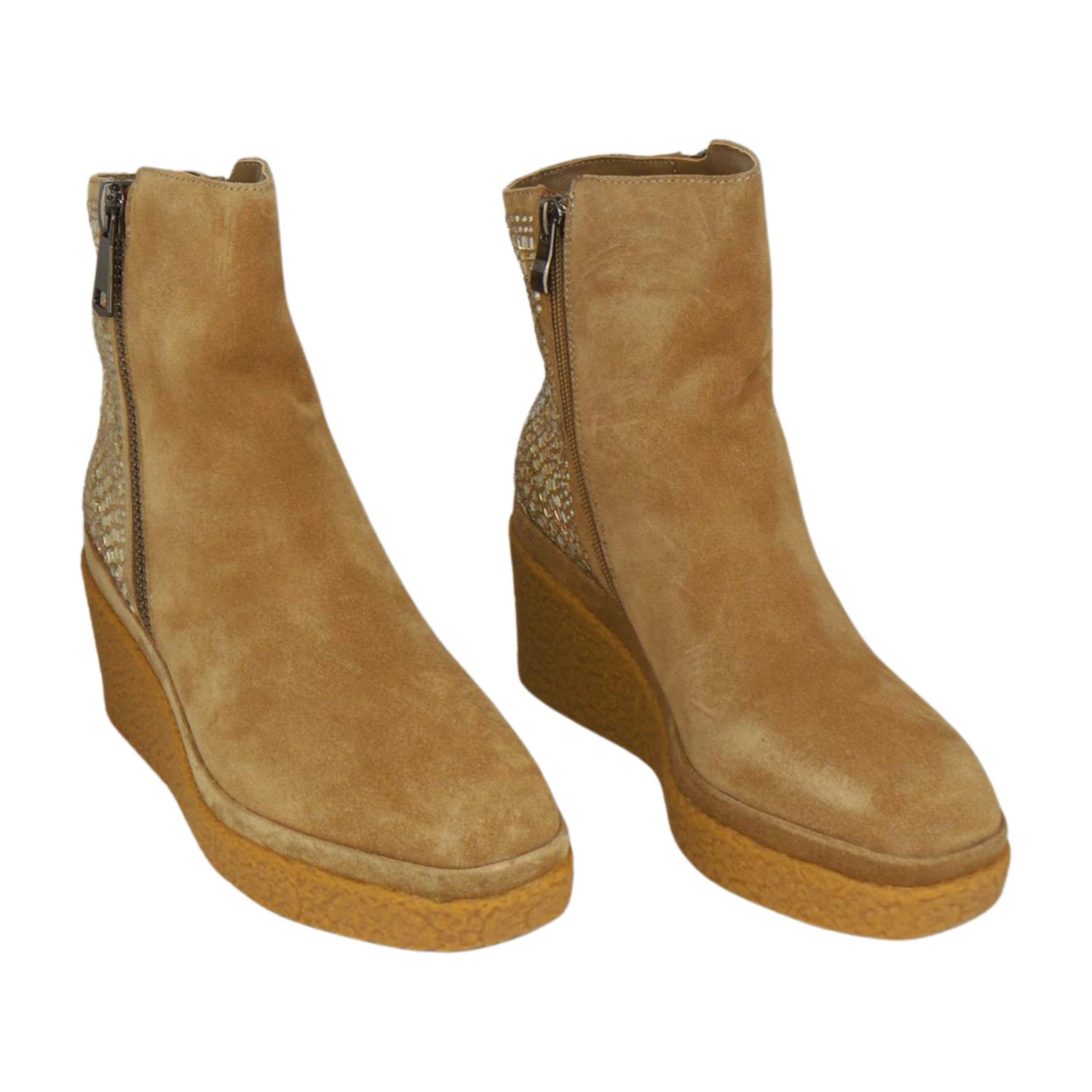 • Tomaia in pelle scamosciata con doppia cerniera laterale , di cui una prettamente estetica , l’altra funzionale per garantire una calzata molto pratica.