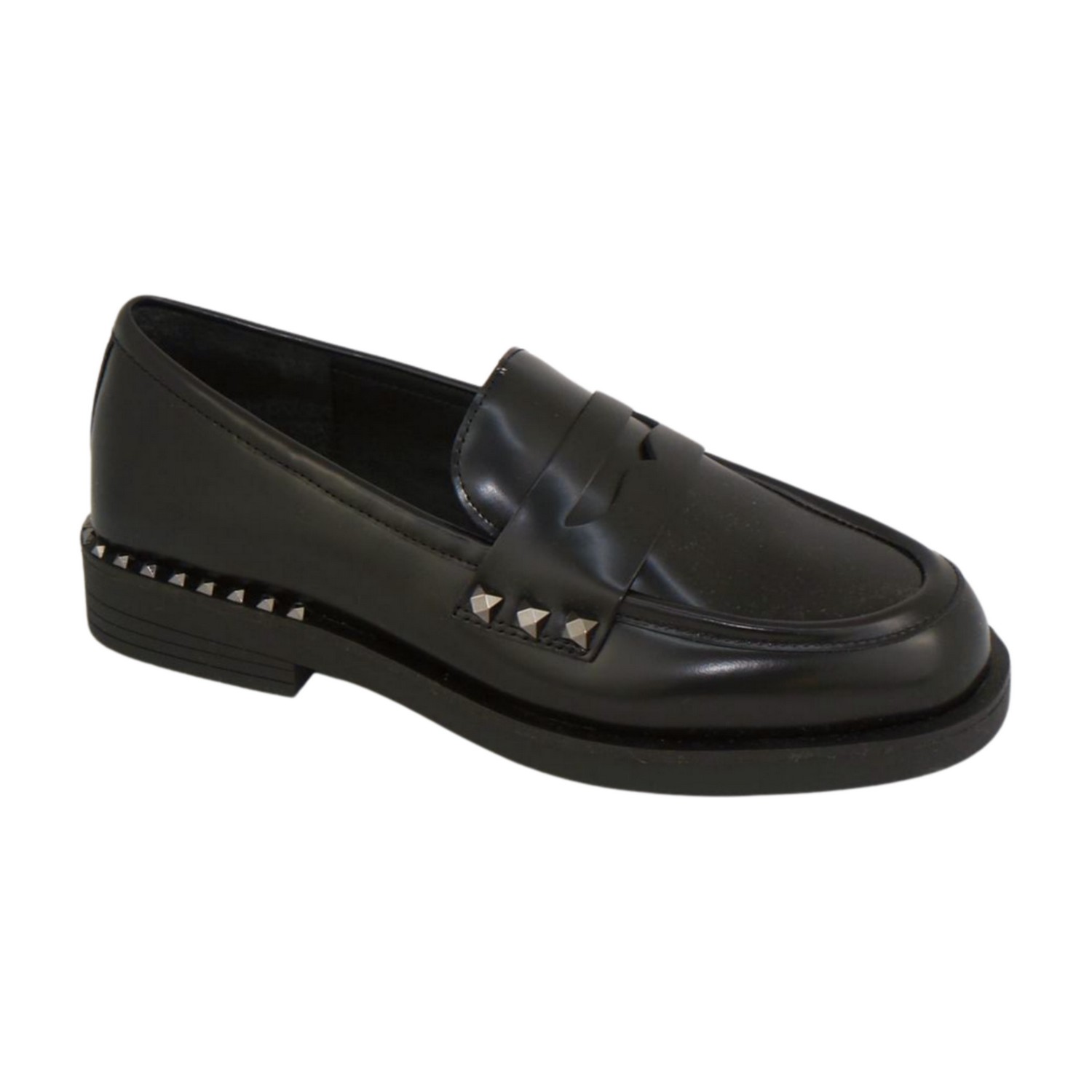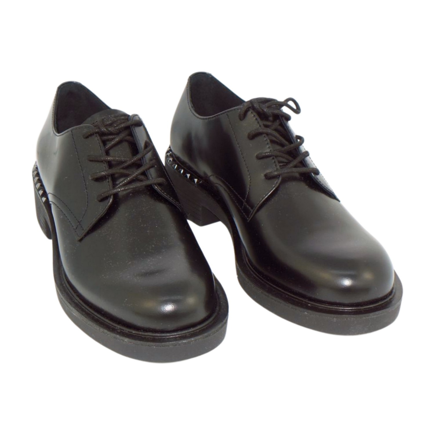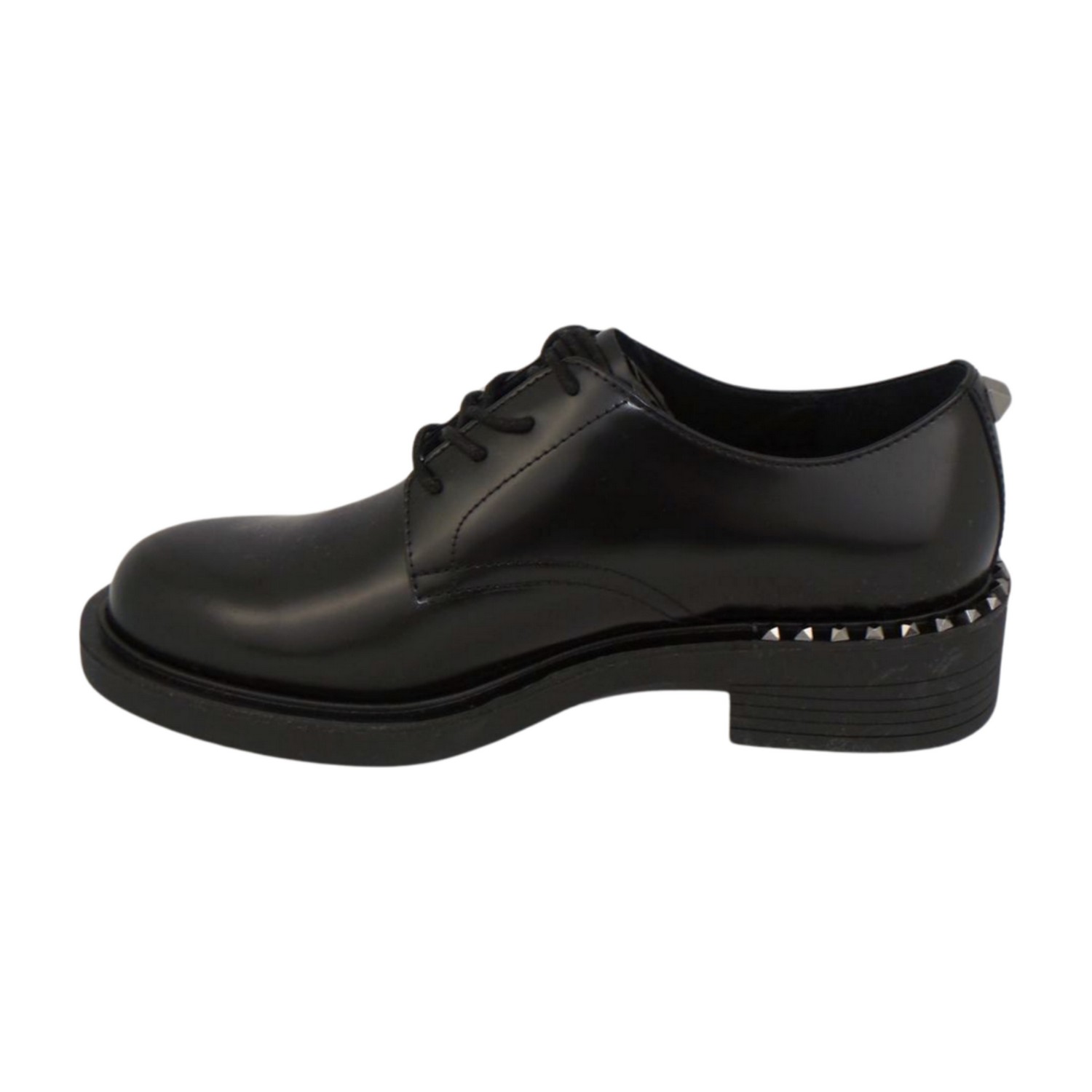 Stringata in pelle nera con borchie sul tacco