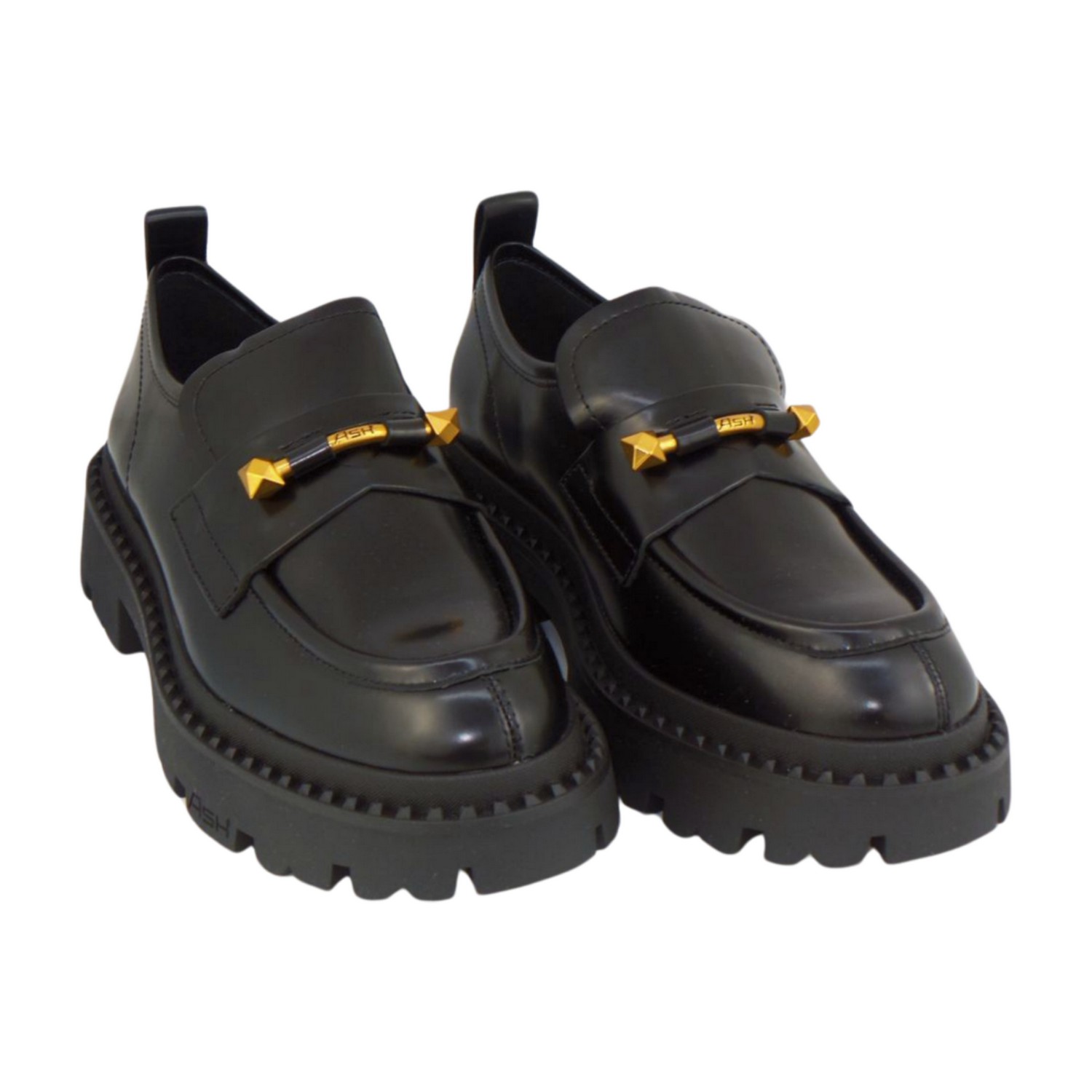 Ash Genial Jack Mocassino Nero In Pelle Con Logo In Metallo