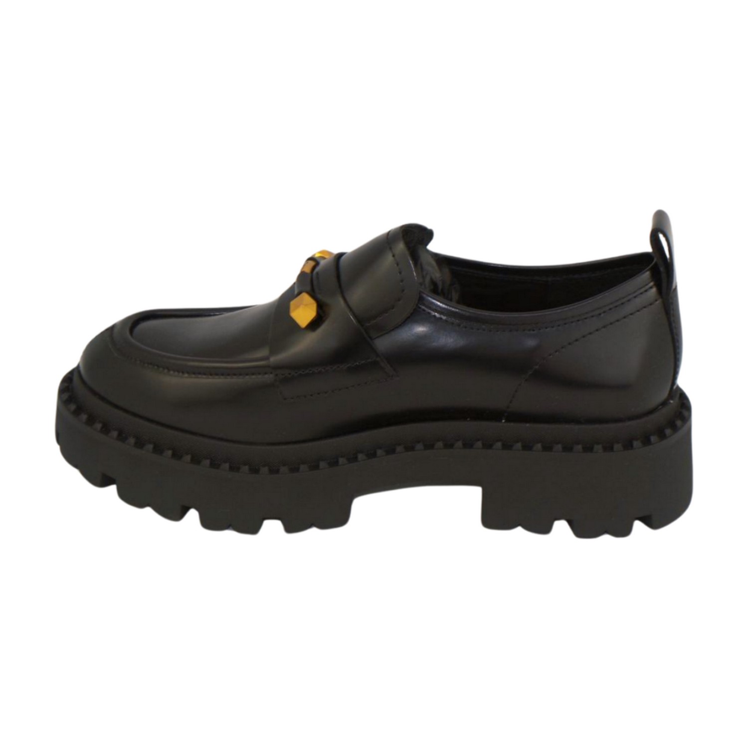 Mocassino in pelle con logo in metallo dorato sul davanti