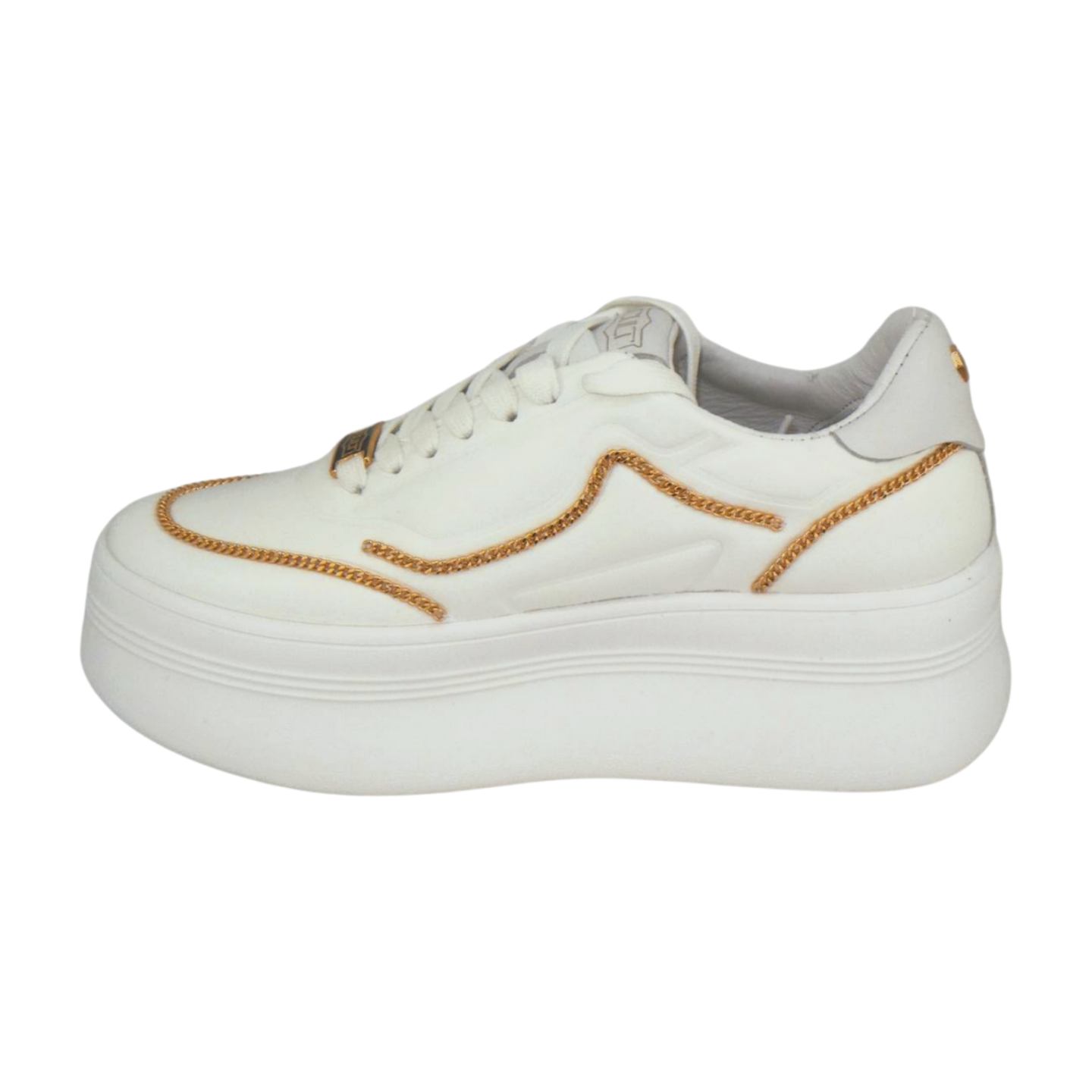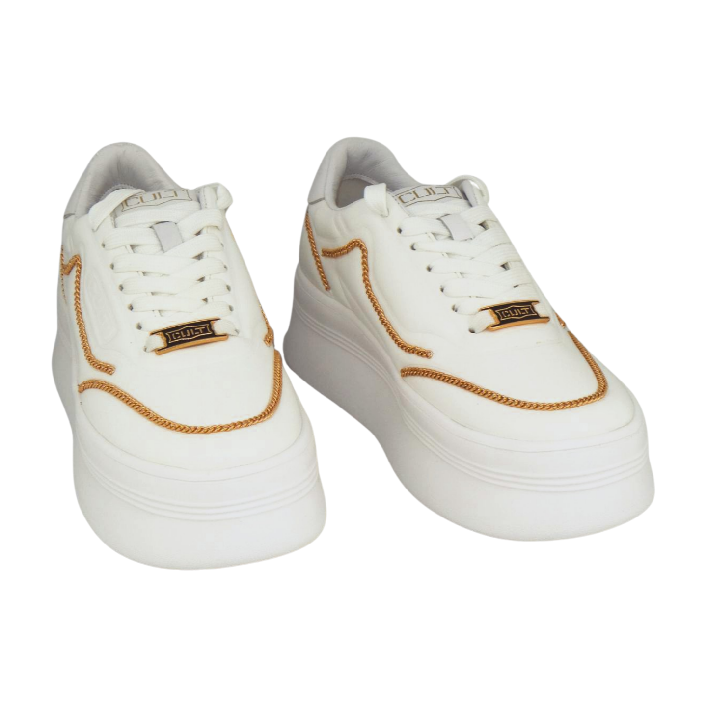 • La sneakers firmata Cult con tomaia in pelle e accessorio catena dorata.
