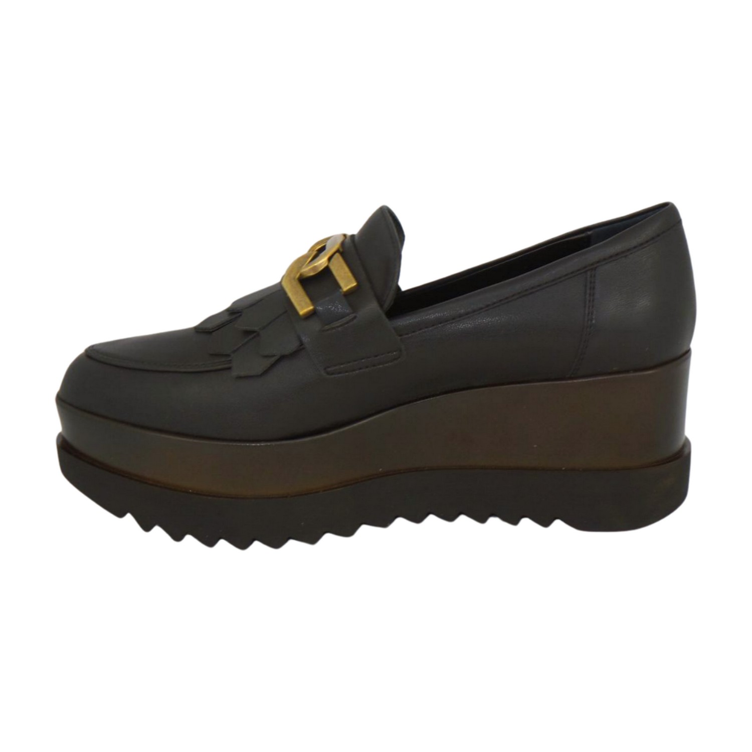 Lorenzo Mari Clea04 Mocassino In Pelle Con Plateau In Gomma E Accessorio Sul Davanti