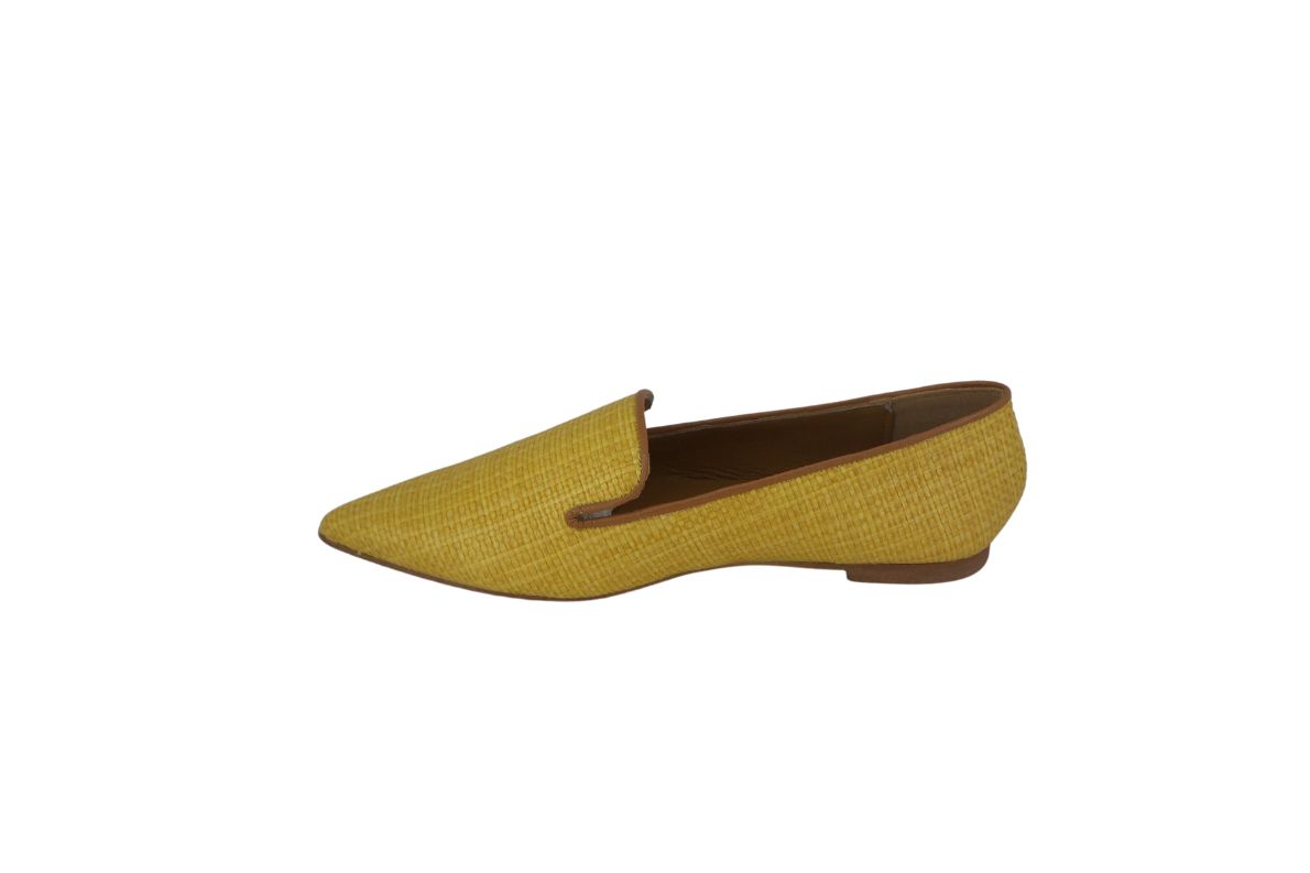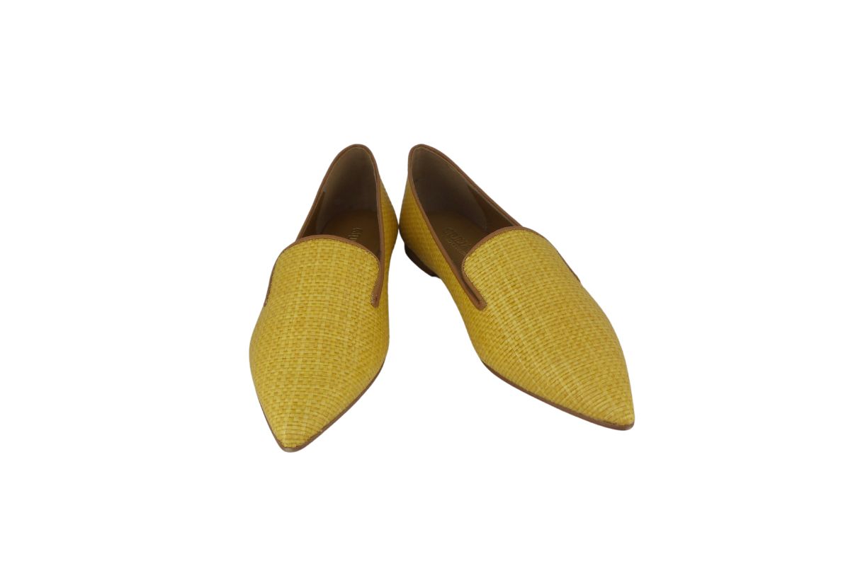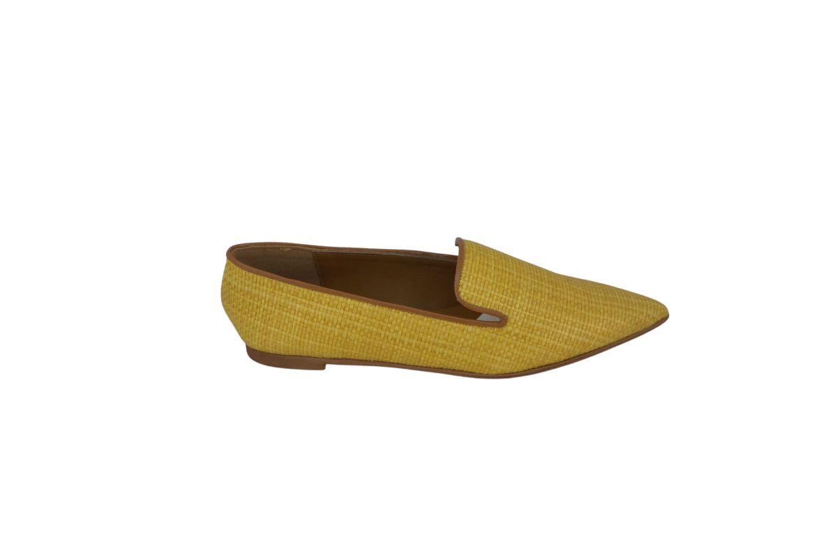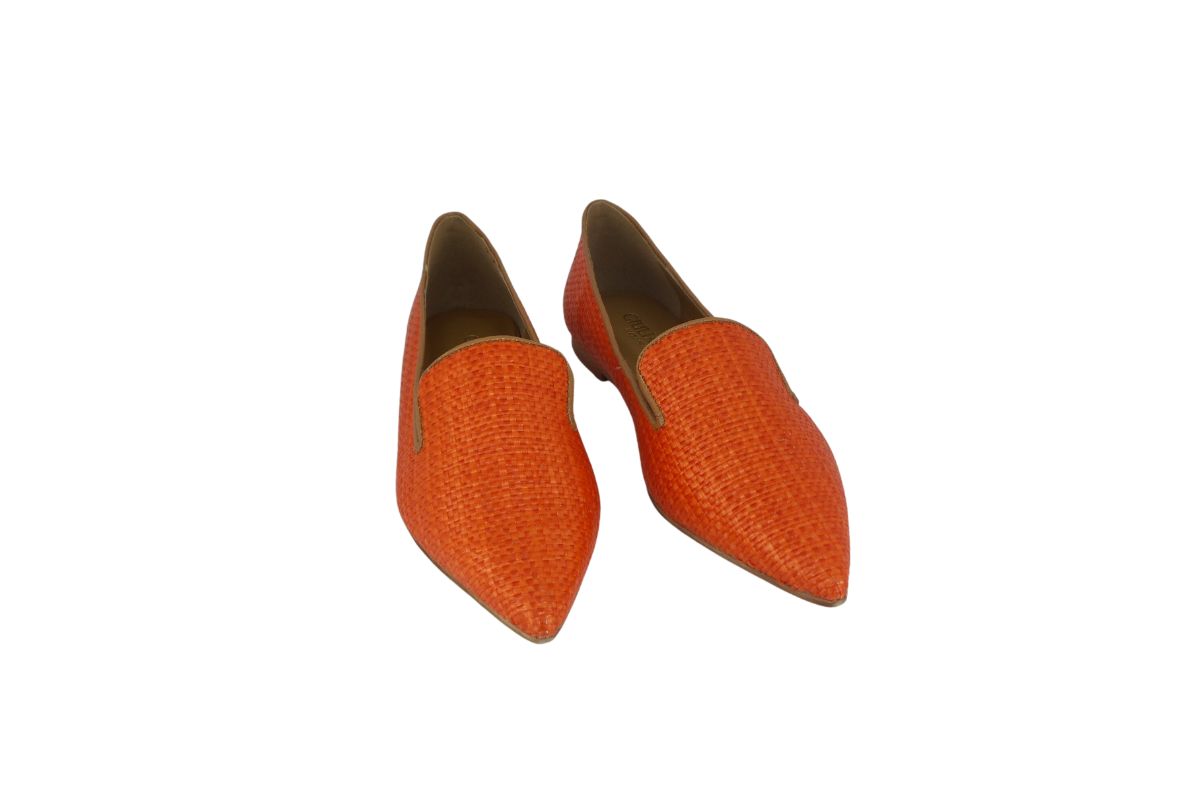 Scarpa in rafia disponibile in arancione e giallo.