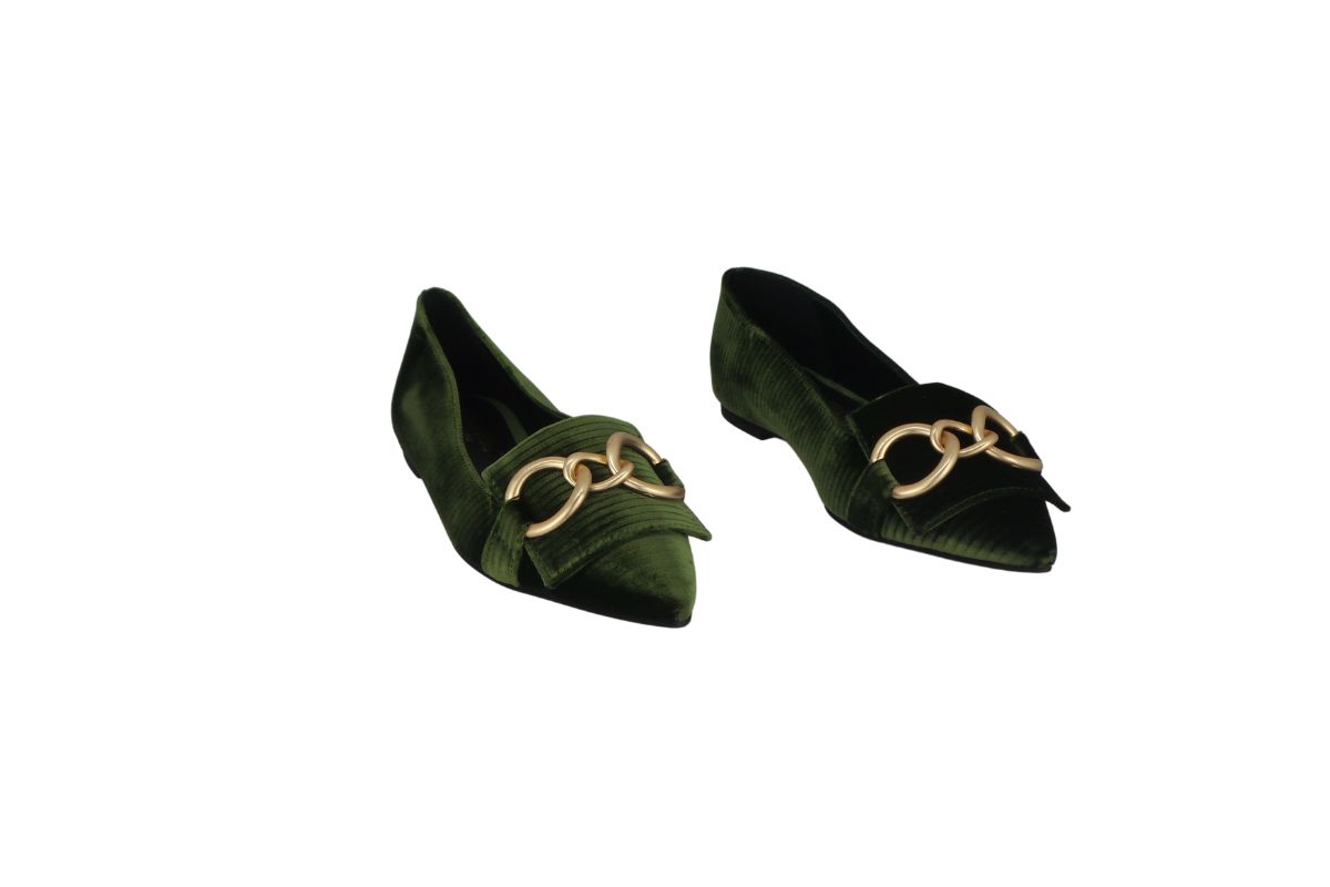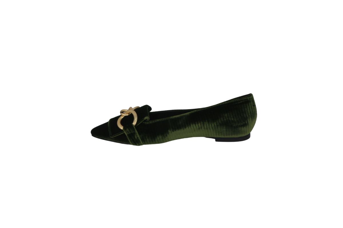 Ballerina in velluto a costine disponibile nei colori verde e marrone.