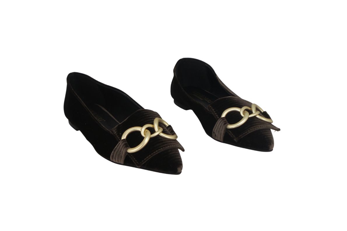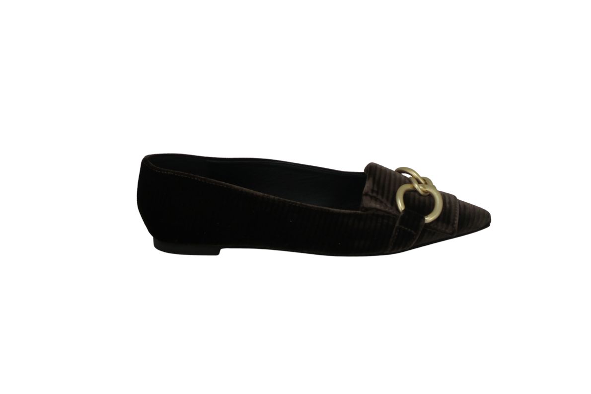 • Tomaia in velluto a costine con accessorio in metallo in punta.