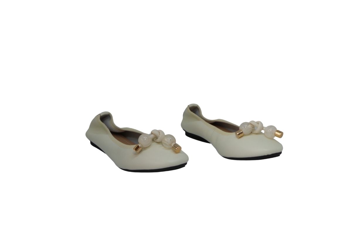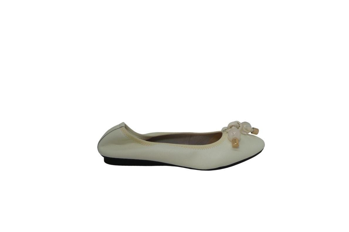 • Ballerina in pelle con fiocchi nei colori panna e nero