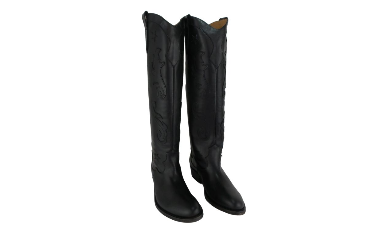 Via Roma 15 3816 Texano In Pelle Nero Con Cuciture Tono Su Tono