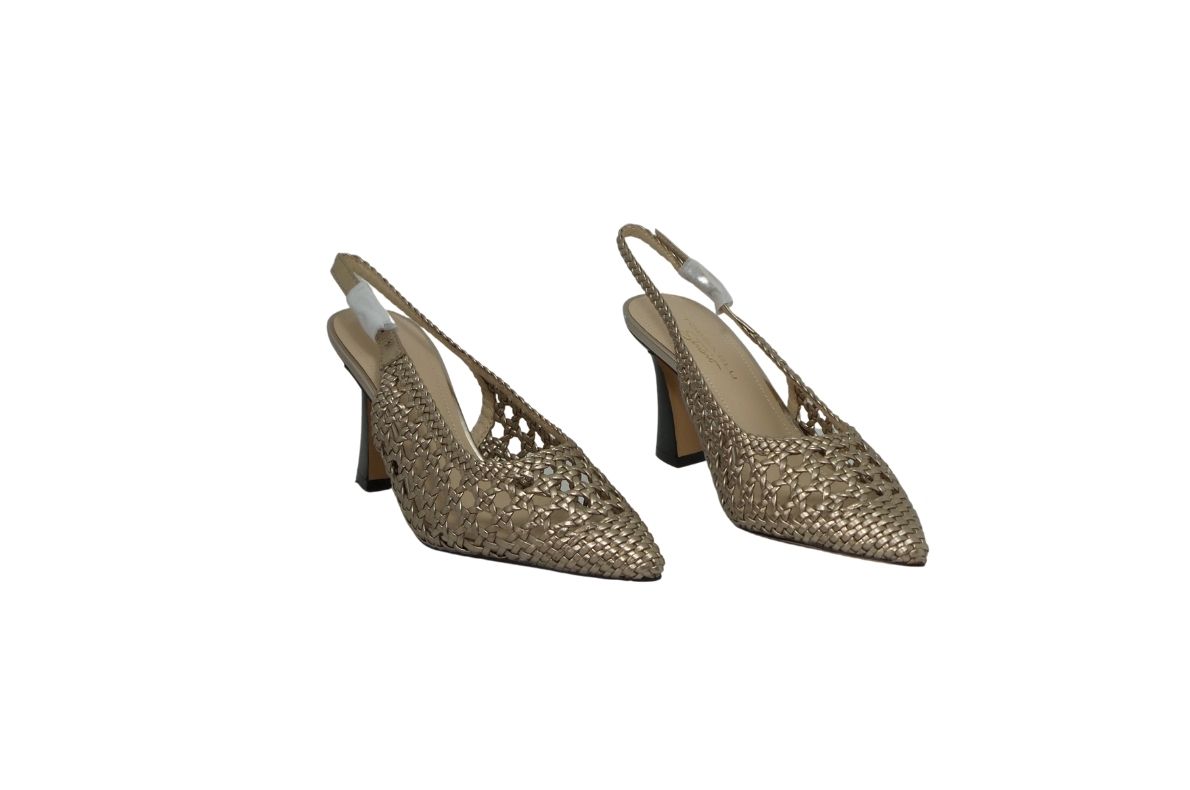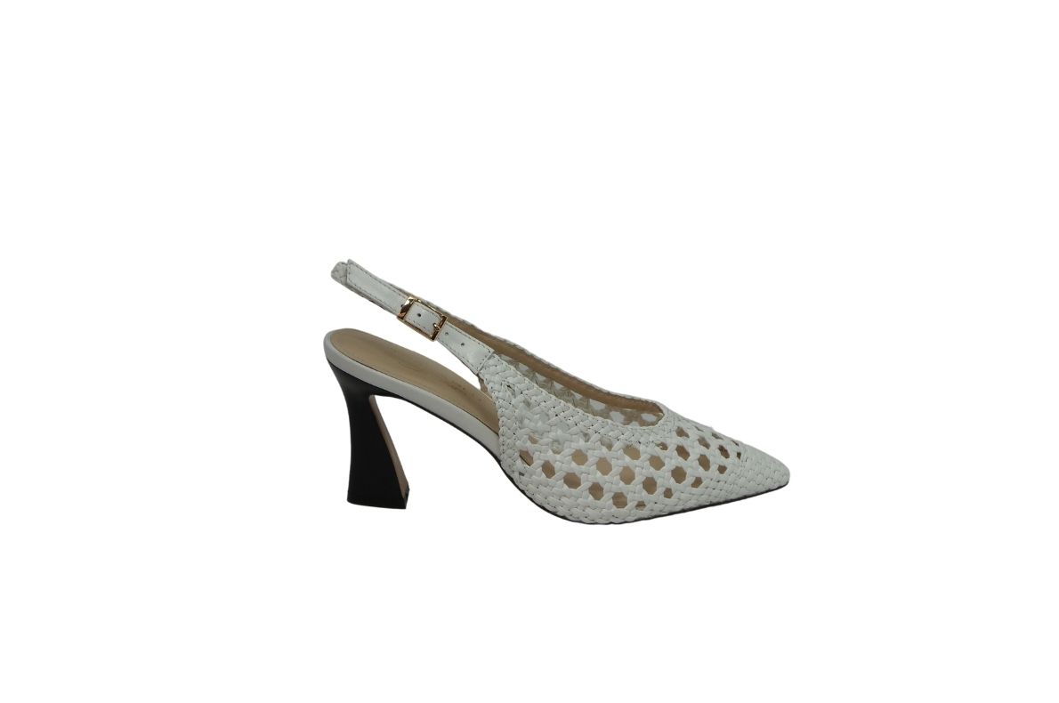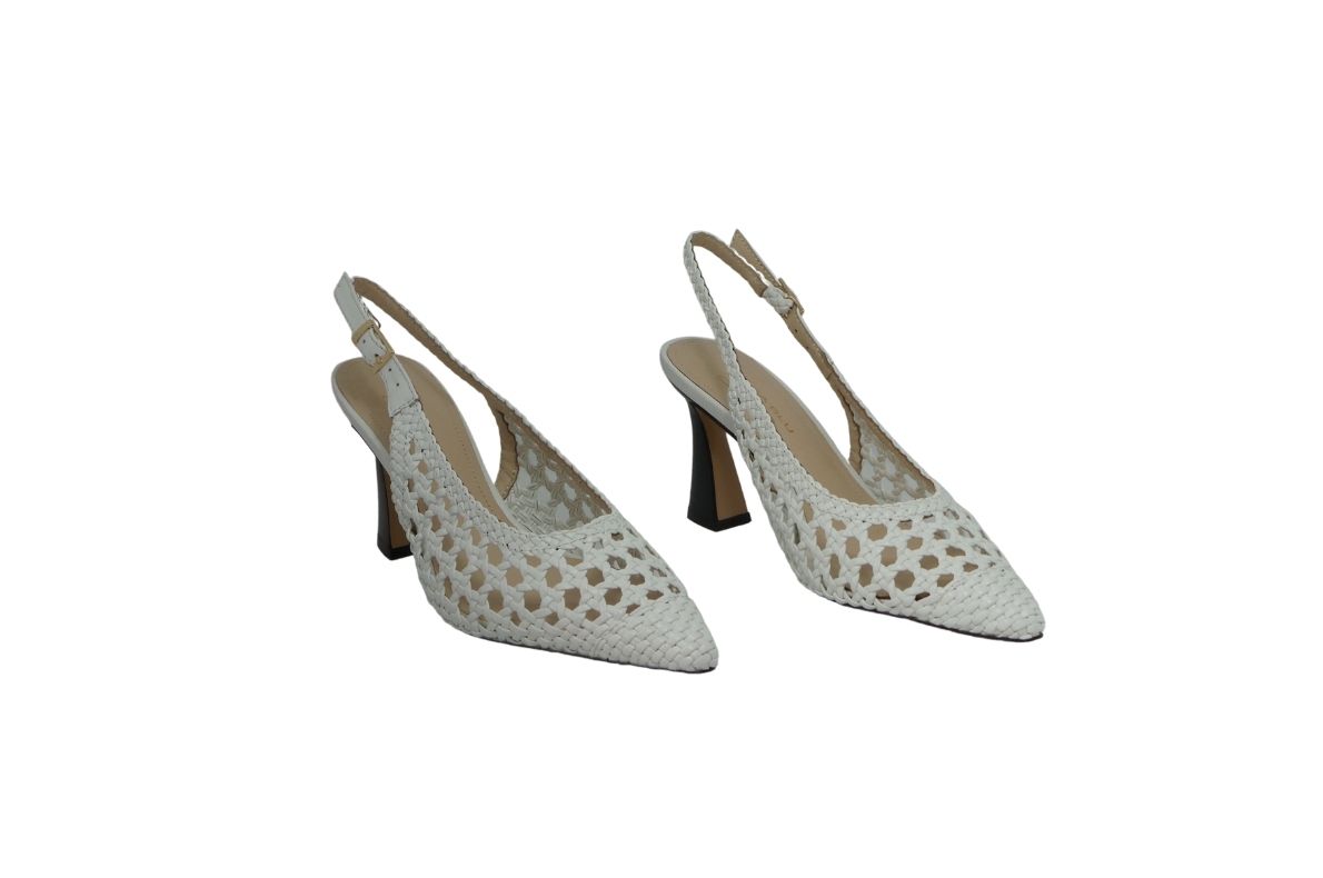 • L’intreccio e il tacco la rendono adeguata sia per la cerimonia che per un abbigliamento più smart.
