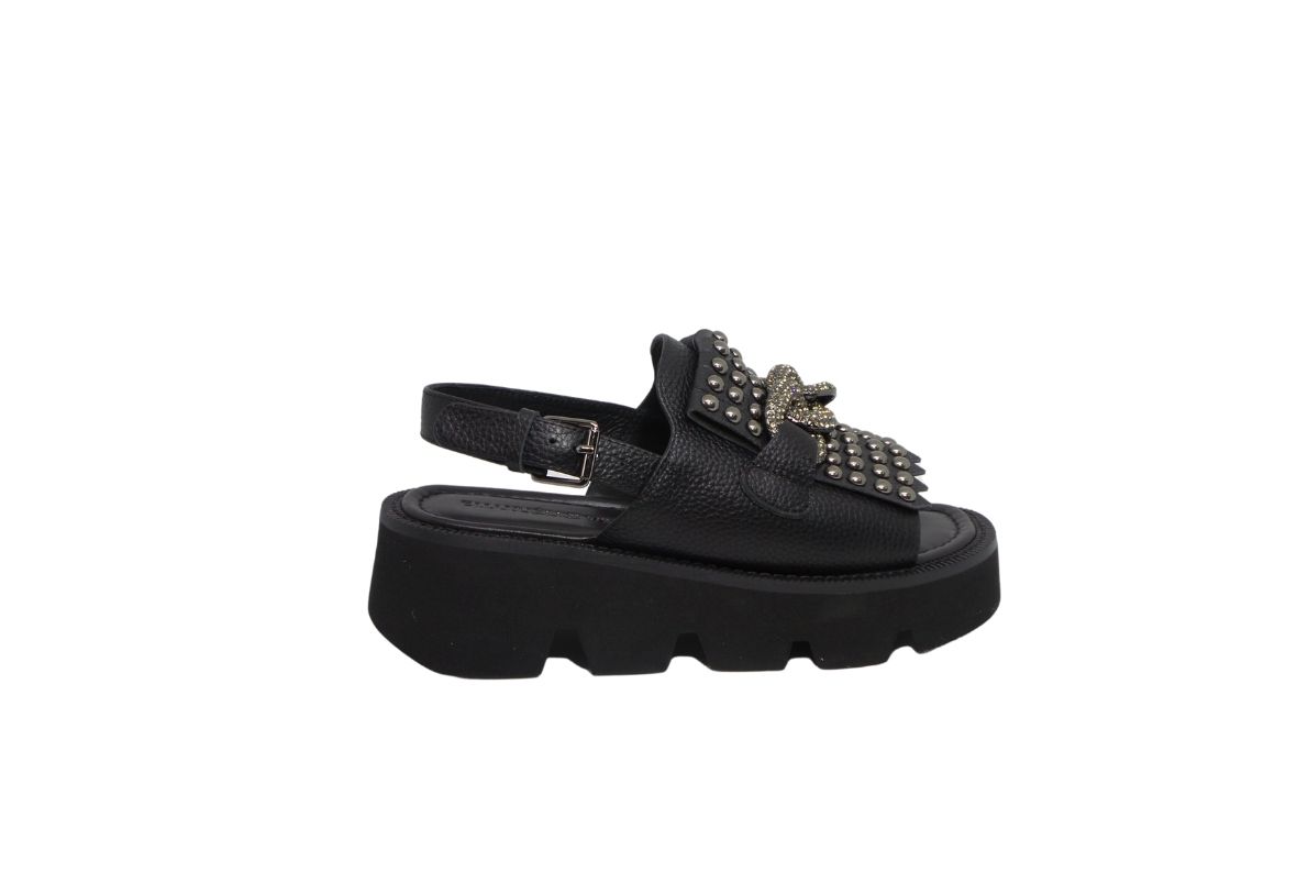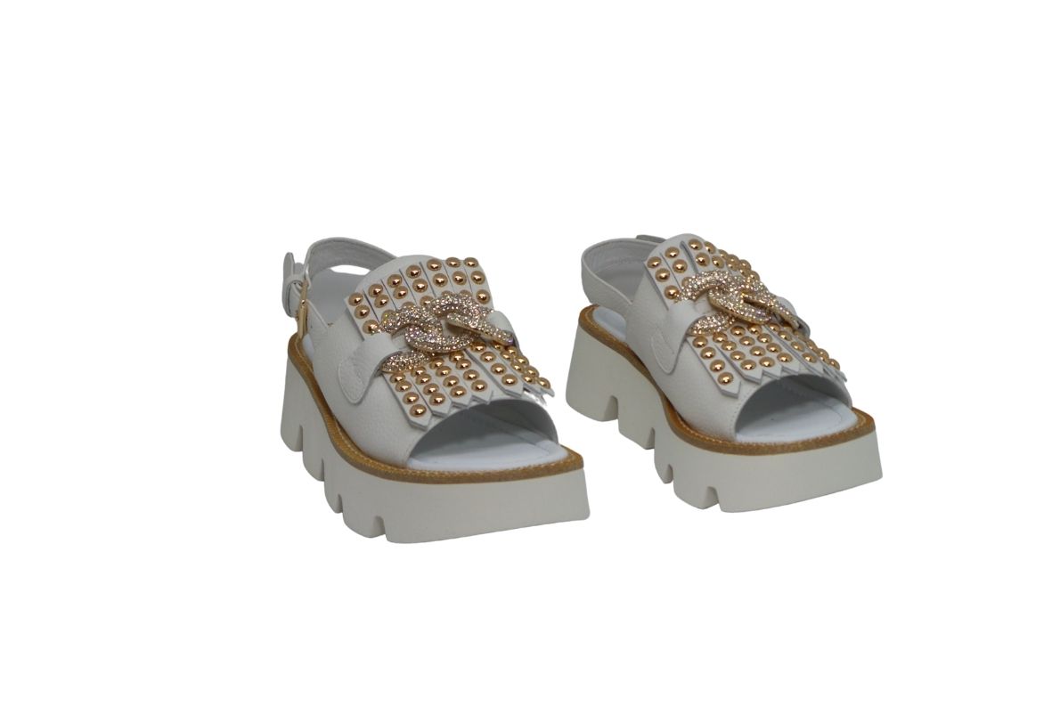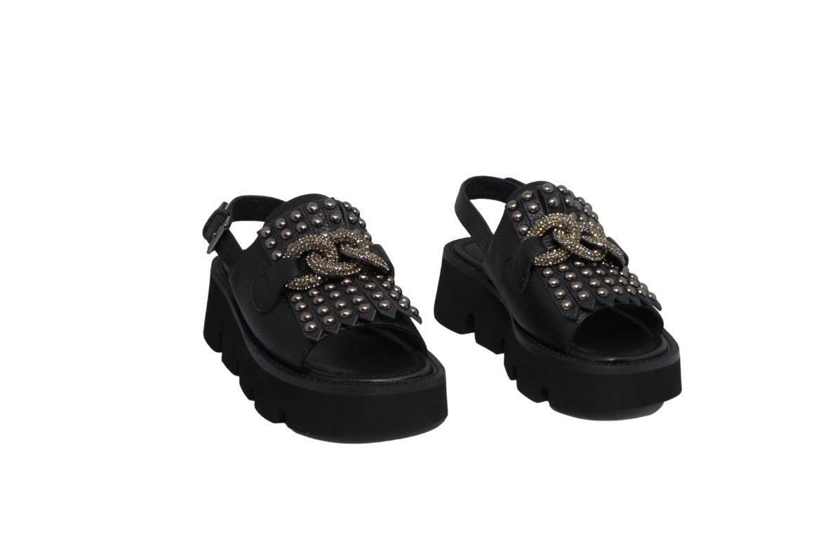 EMANUELLE VEE 421M-450-11 Sandalo In Pelle Con Catena E Frange
