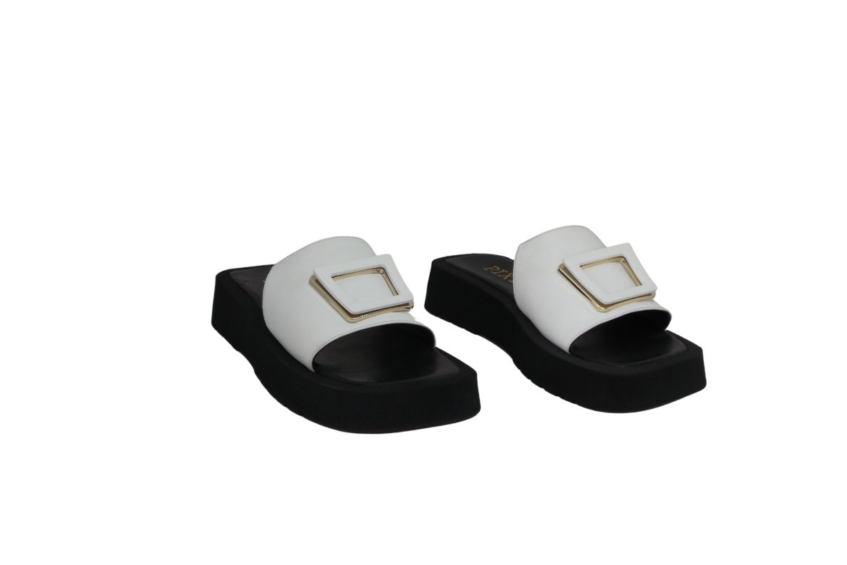 Ciabatta in pelle fondo fussbett bianca e nera.