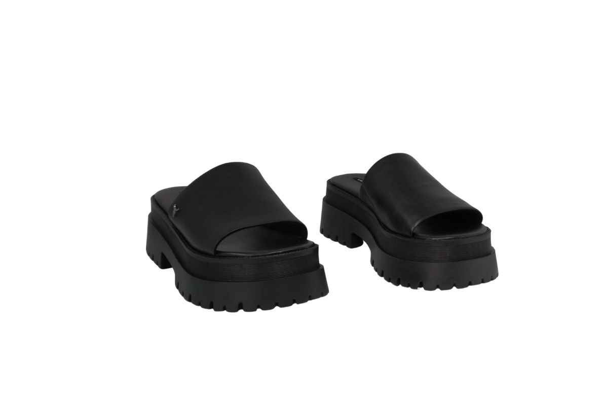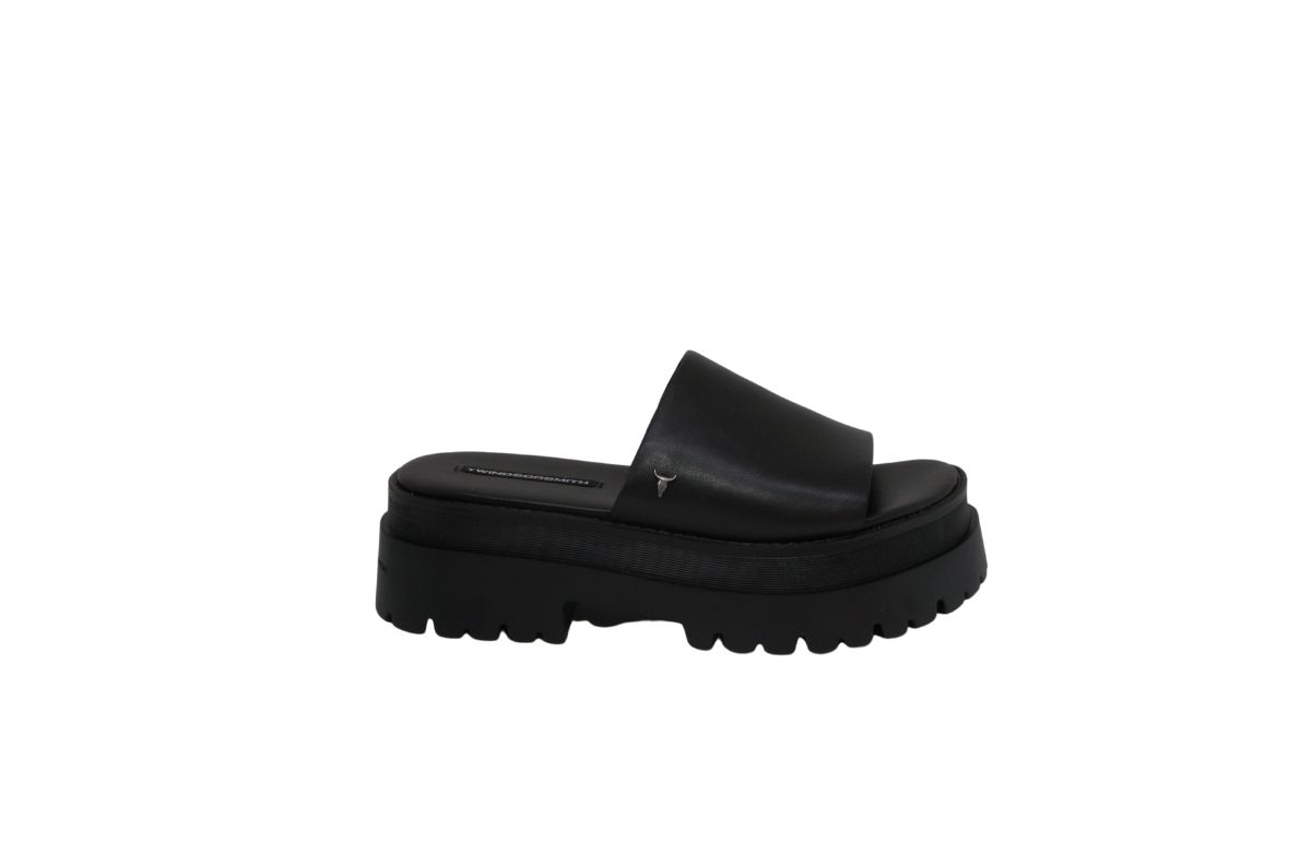 WINDSOR SMITH Ciabatte da donna in pelle nera con plateau Track