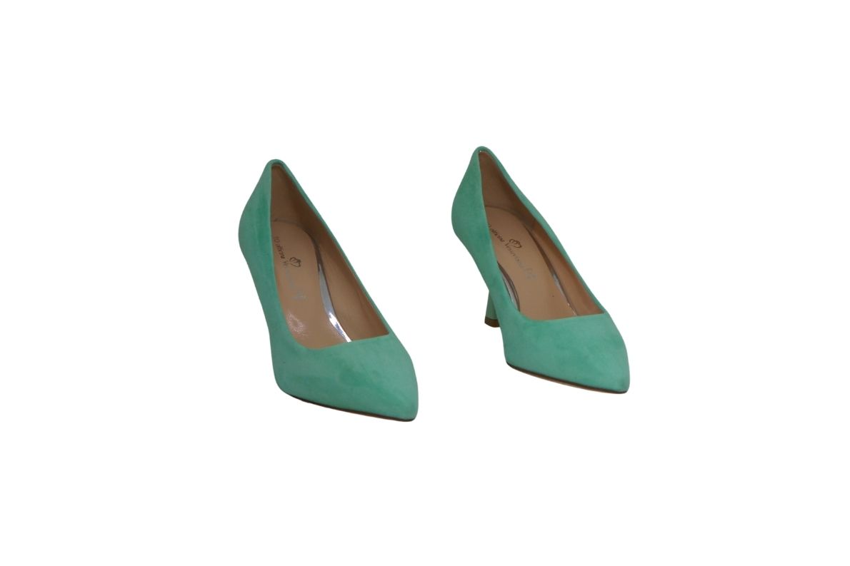 • Il tacco a rocchetto in vernice è alto 8 cm