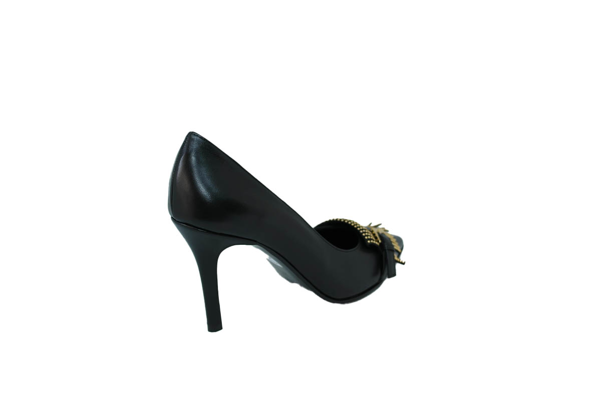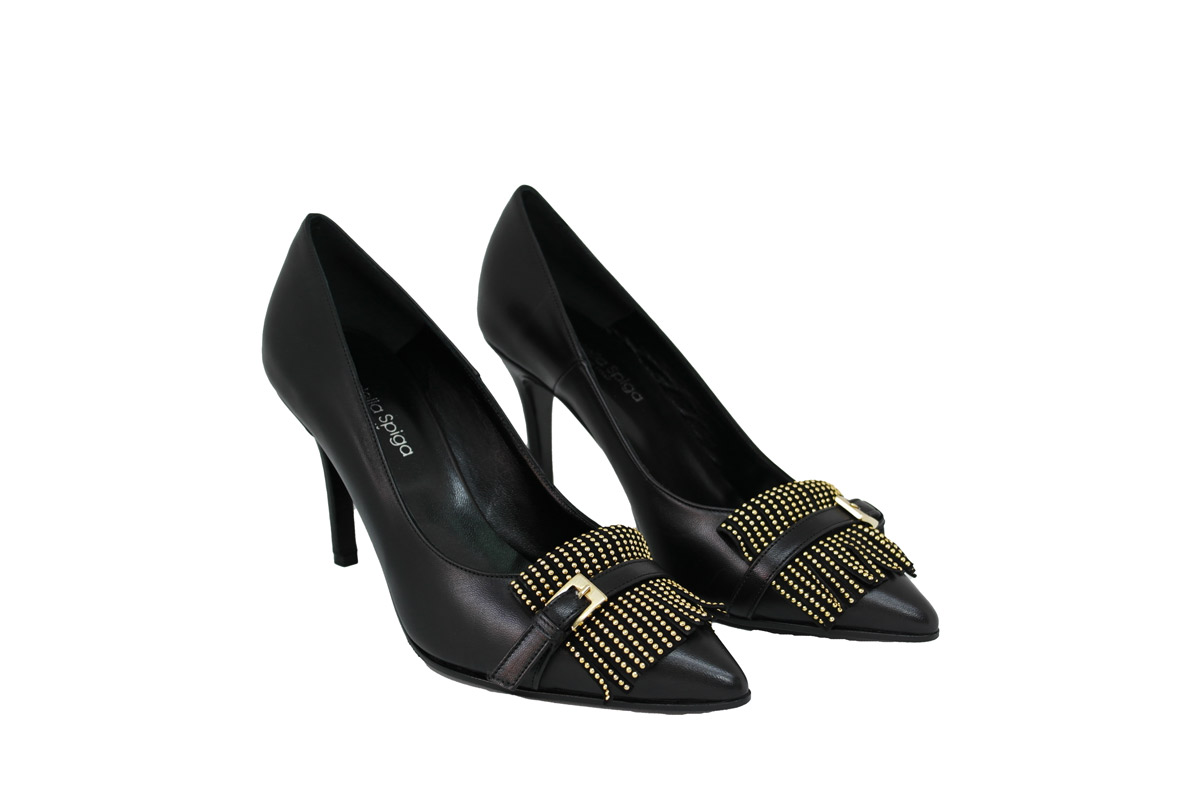 Decollete in Pelle Nero con Frange e Borchie Dorate