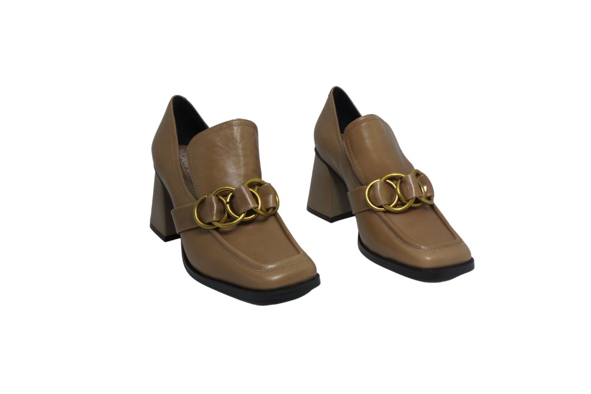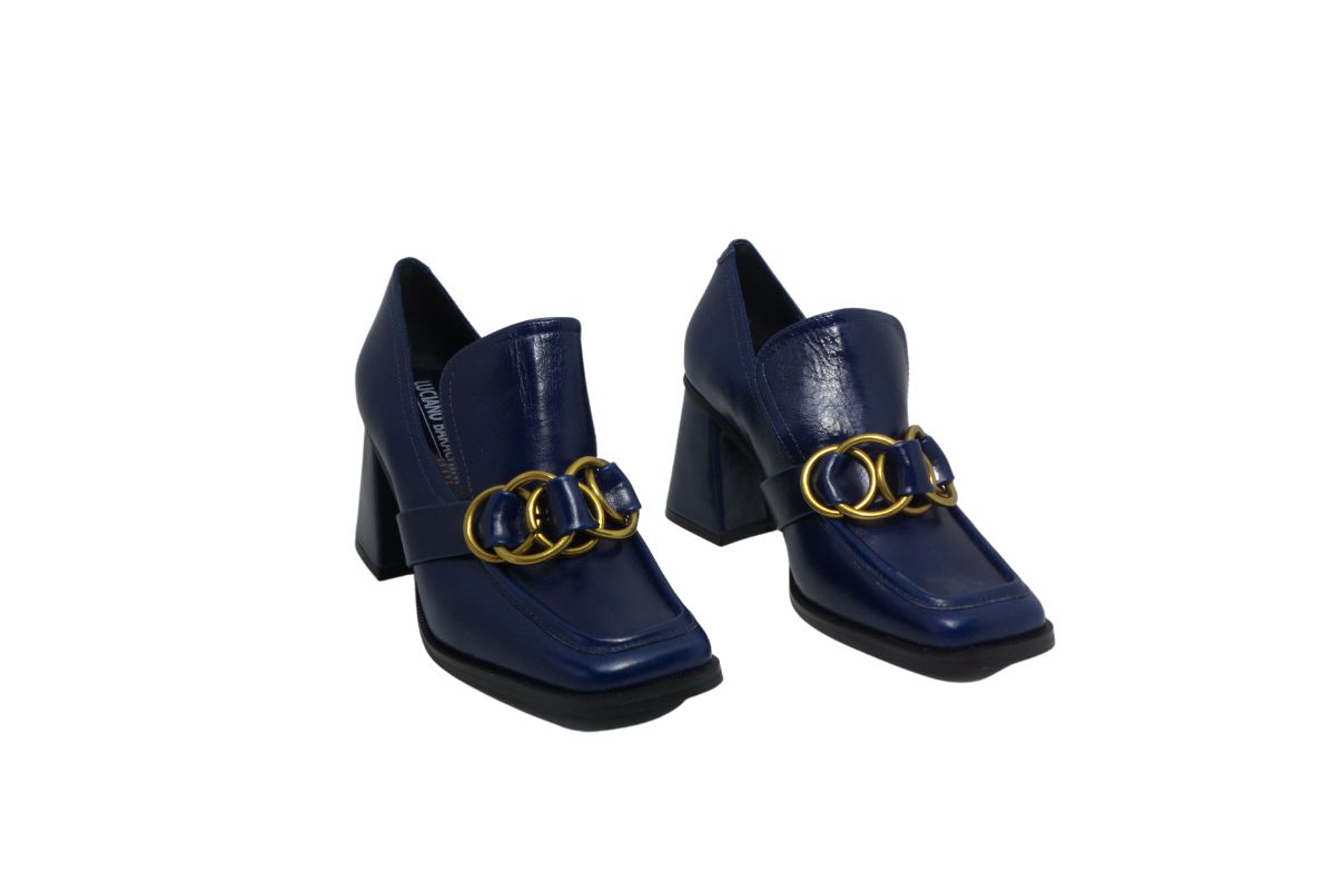 • Tomaia in morbidissima pelle di vitello accessorio in metallo su dorso piede e finale con punta squadrata molto cool.