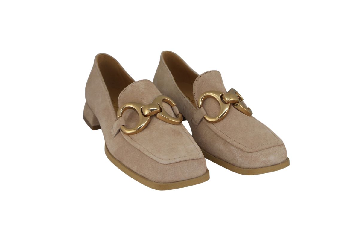 Cool e Chic il mocassino firmato Bruno Premi disponibile in camoscio cipria e pelle naplack bianco.