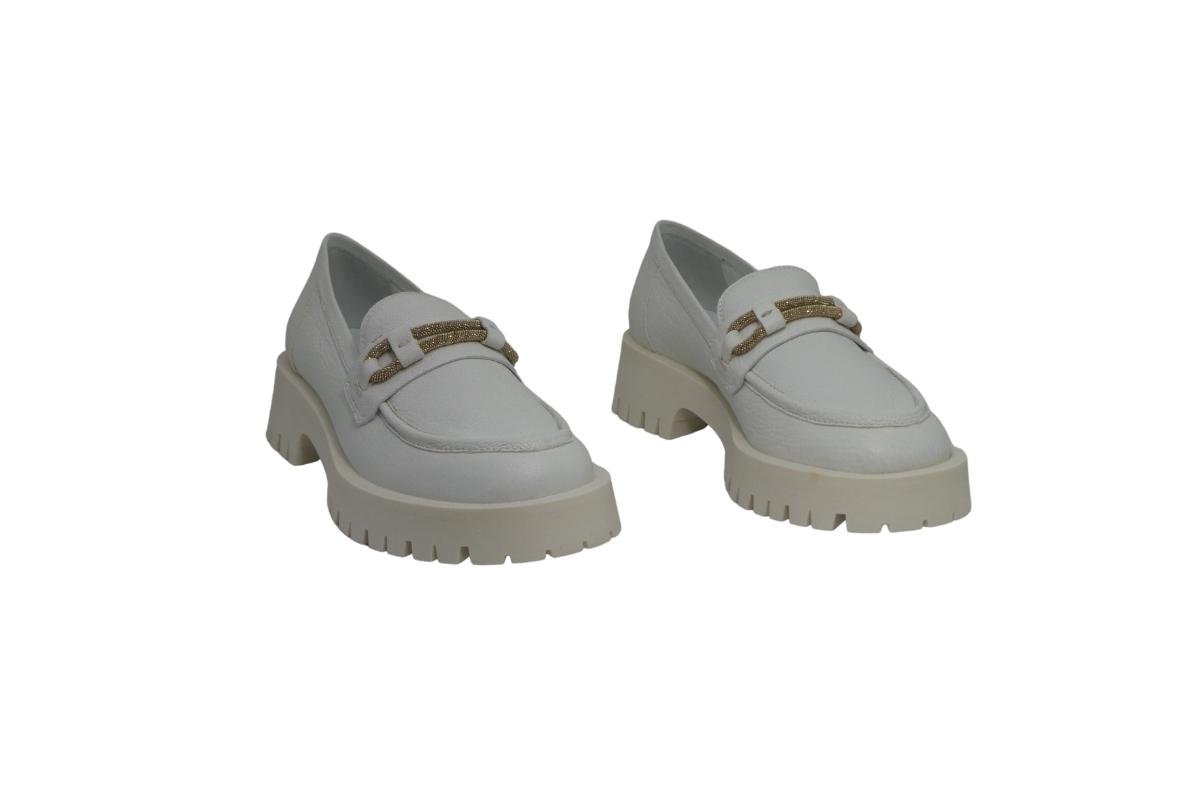 Mocassino in morbida pelle disponibile nel colore bianco.