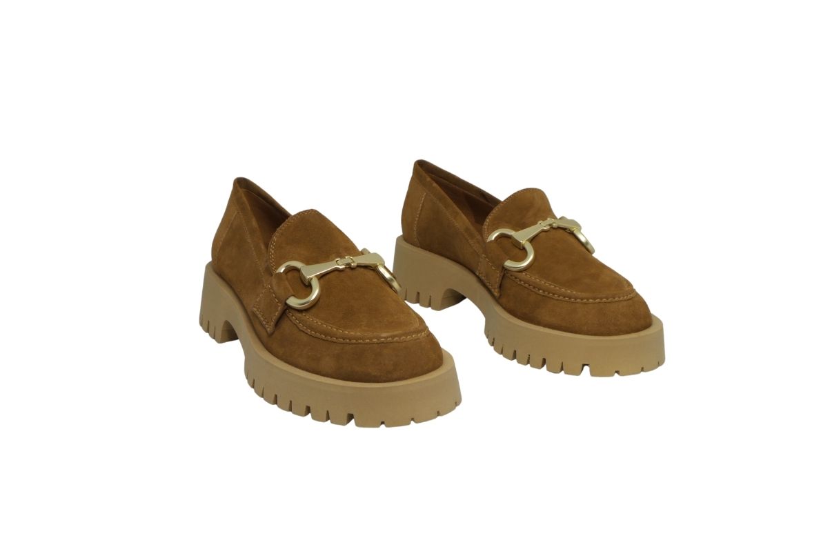Mocassino in pelle scamosciata disponibile nel colore Camel.