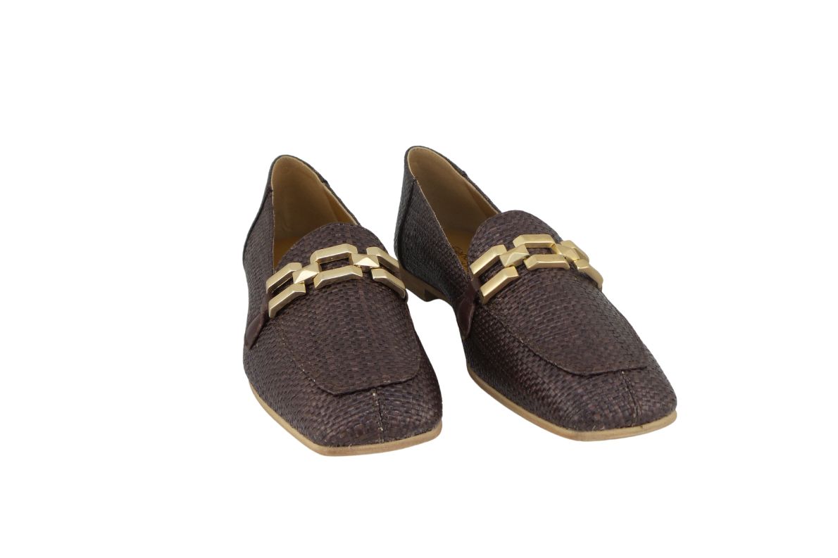 Mocassino in rafia con morsetto sul collo
