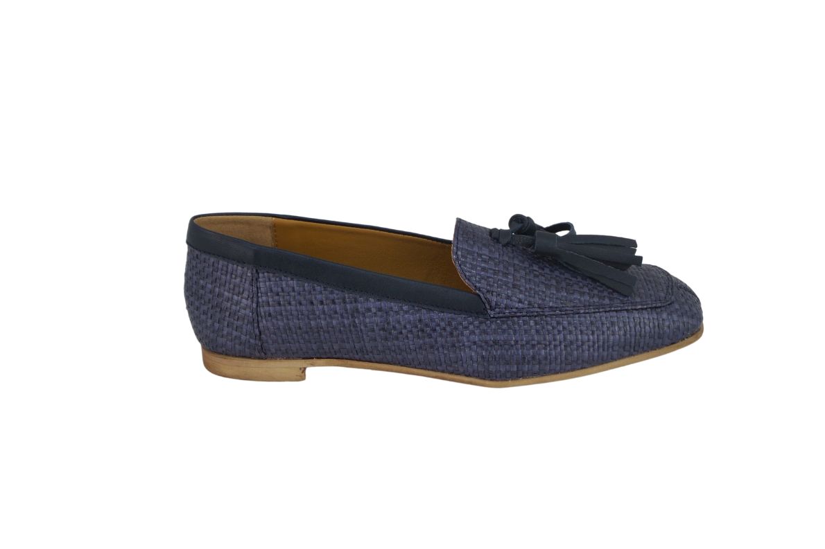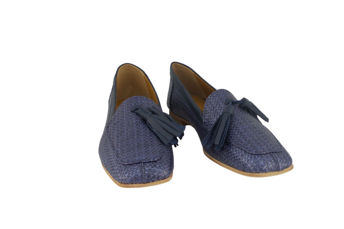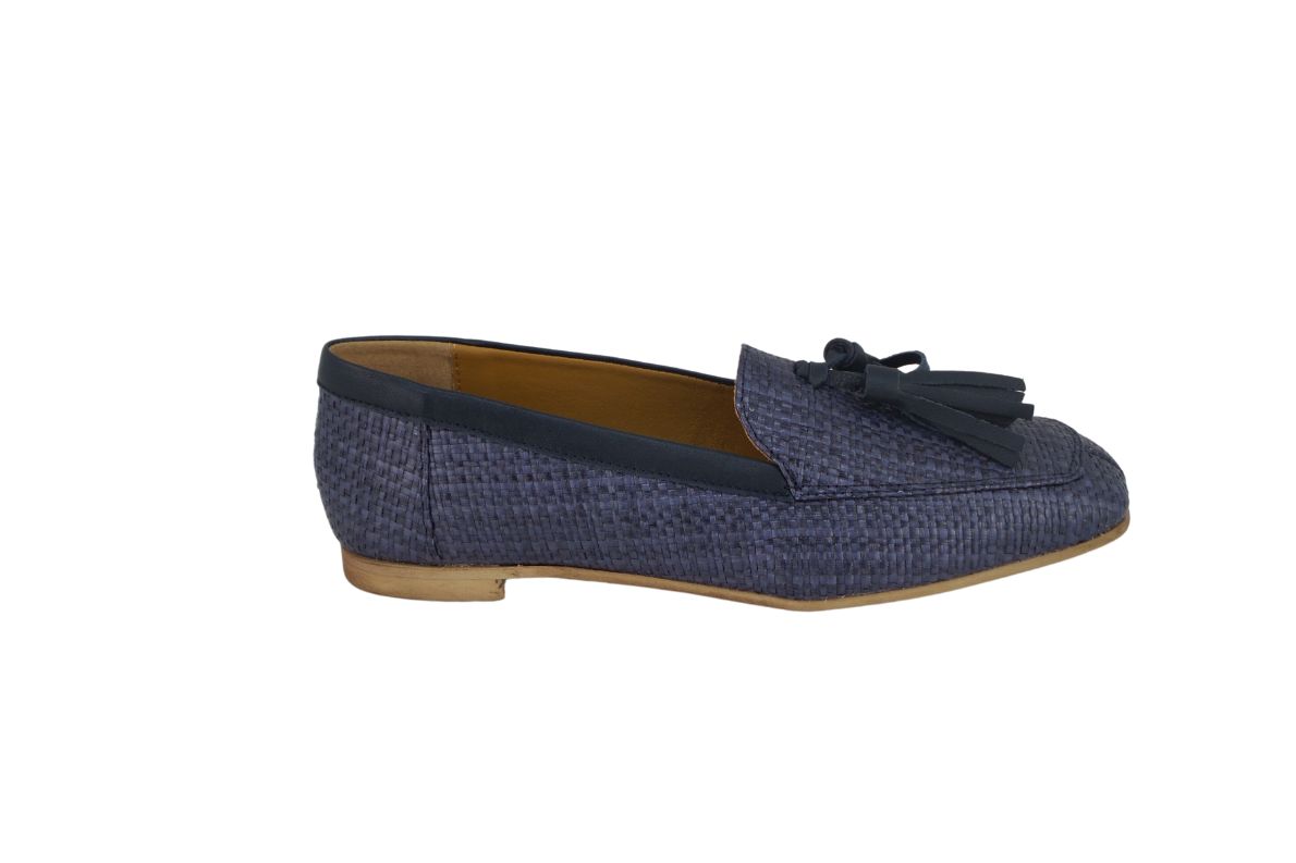 • Tomaia in pelle rivestita in rafia , nappine su dorso piede a dare un tocco ancora più fashion , punta squadrata.