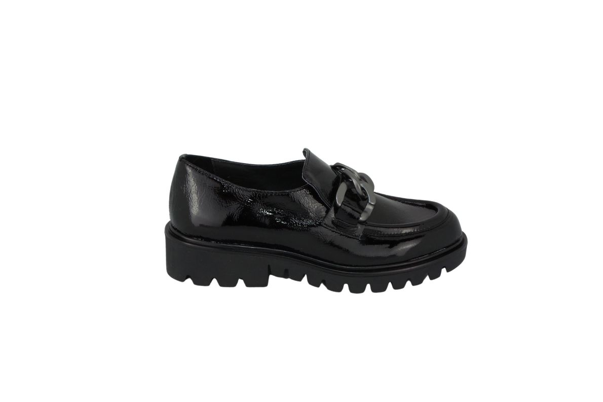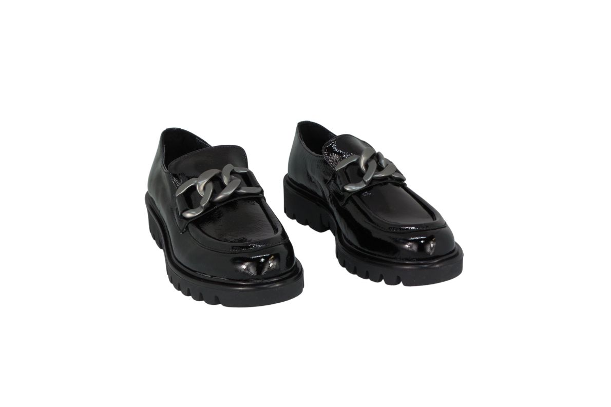 • Morbidissima tomaia in pelle lucida arricchita da un accessorio in metallo sul dorso piede.