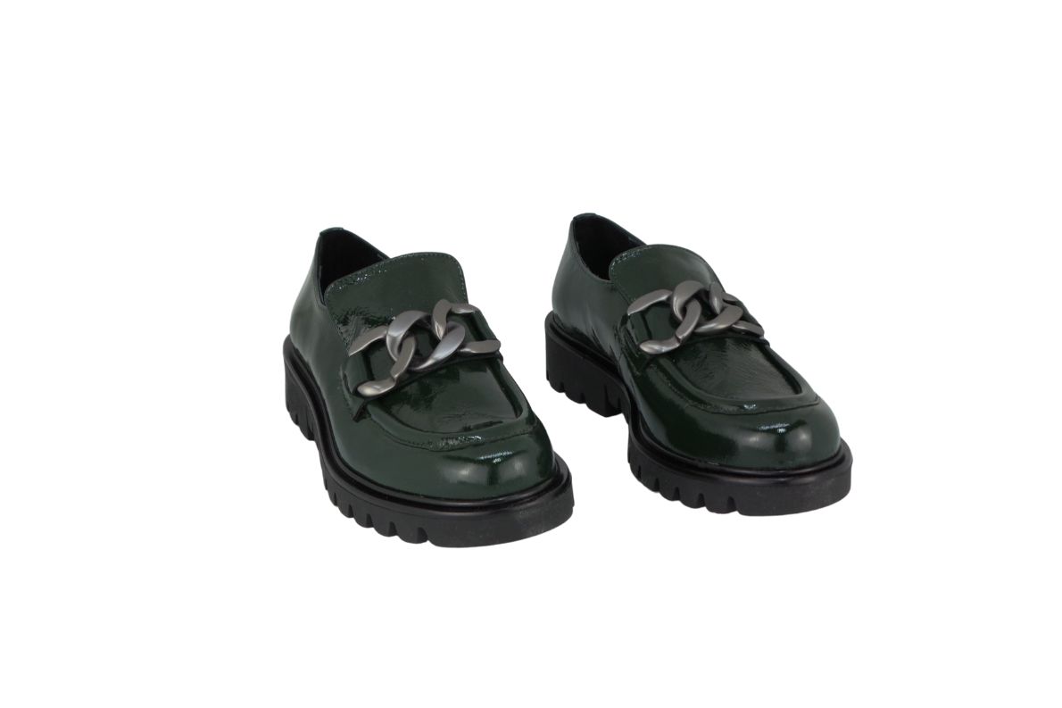 Mocassino in pelle naplak disponibile in verde bottiglia e nero.
