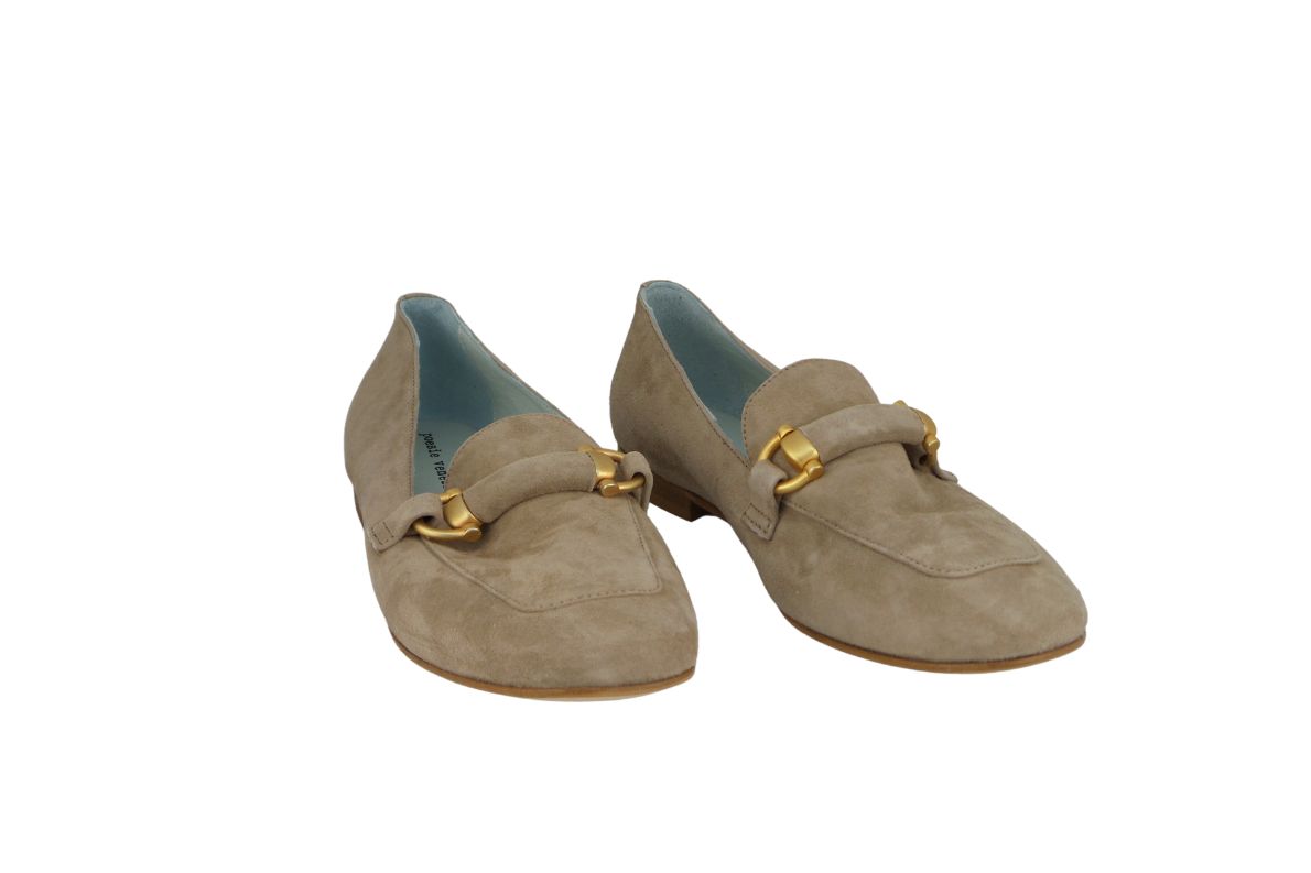 Mocassino In Camoscio Con Morsetto Oro