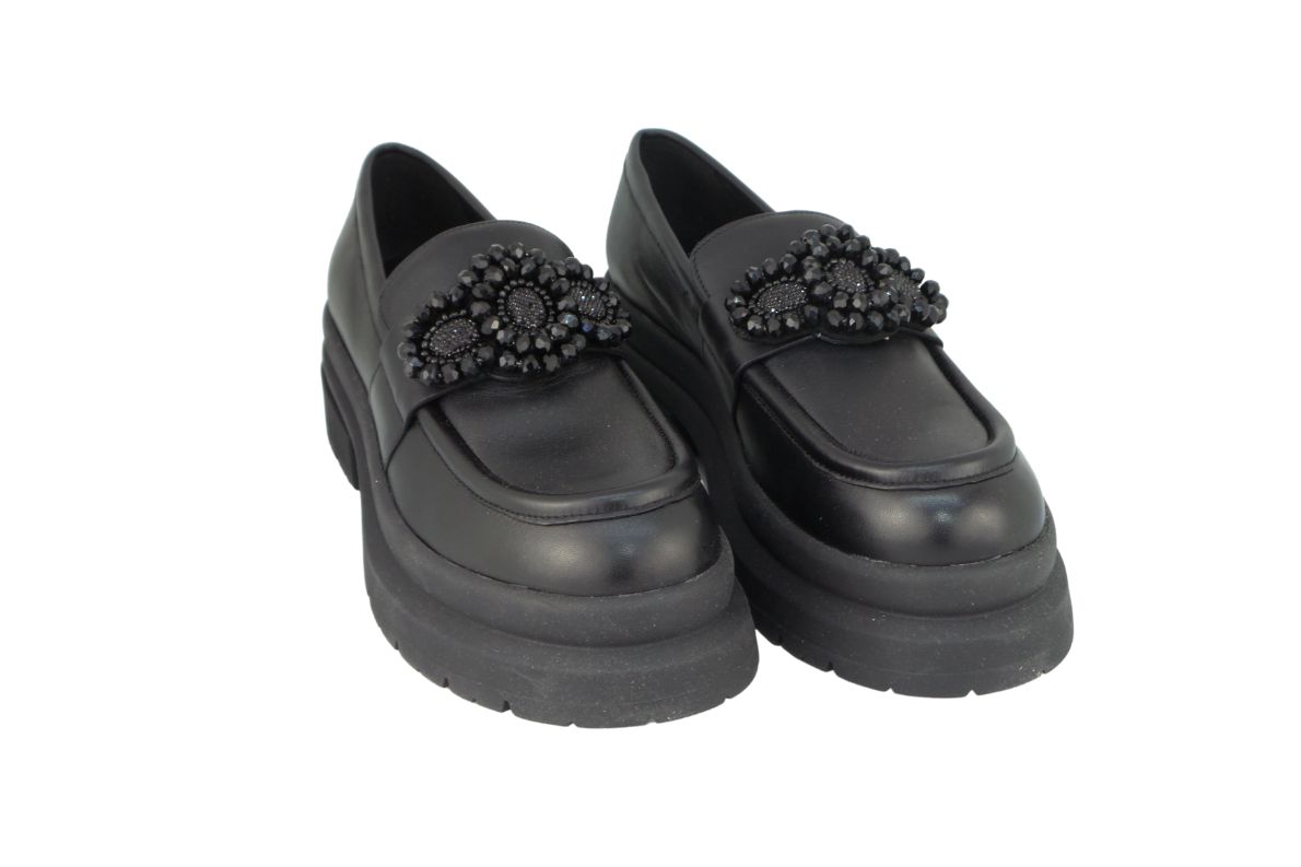 Mocassino Donna in Vera Pelle con suola in Gomma molto comodo ideale per la stagione Invernale con applicazioni e punta rigida prodotti in Italia