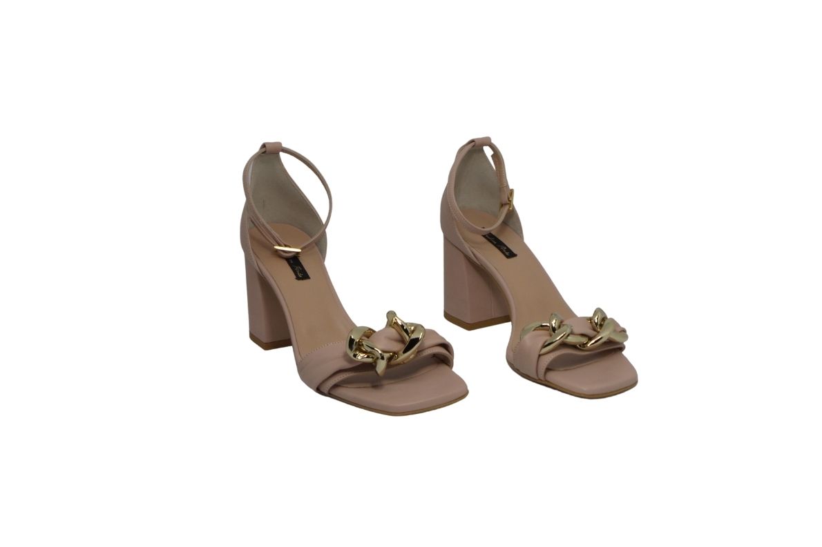 Sandalo in pelle disponibile nei colori nero cipria e panna con punta squadrata
