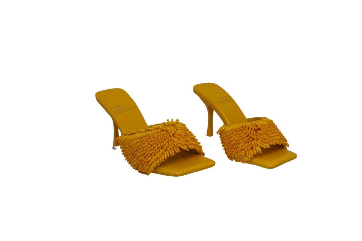 Davvero originale il sandalo in pelle verniciata con punta squadrata