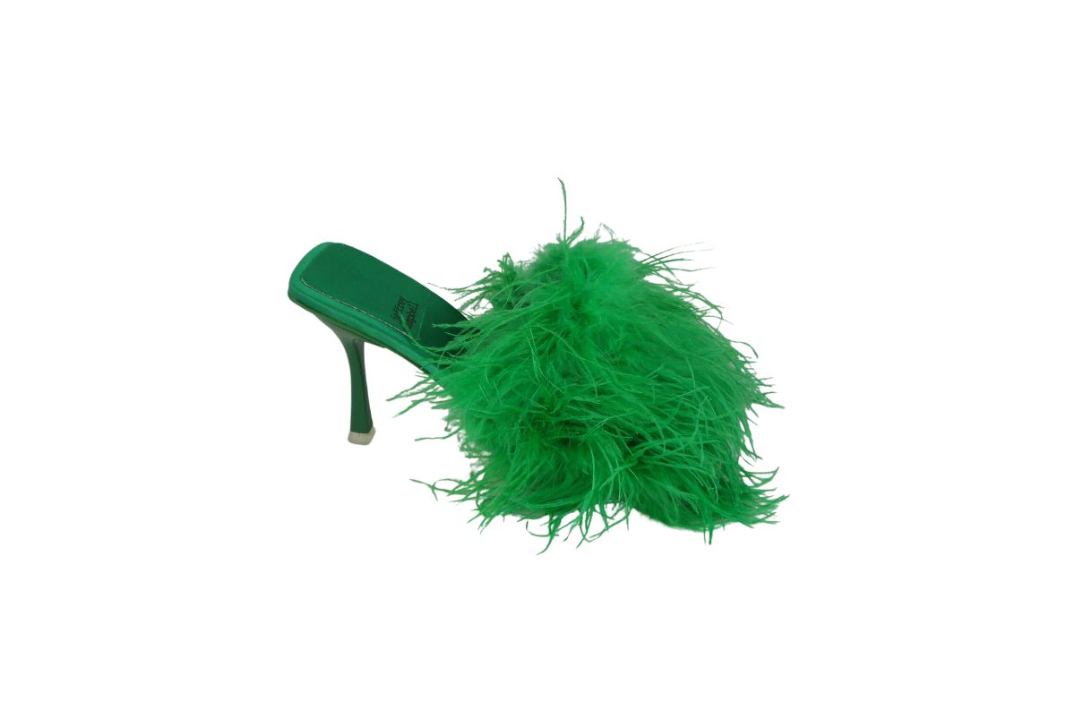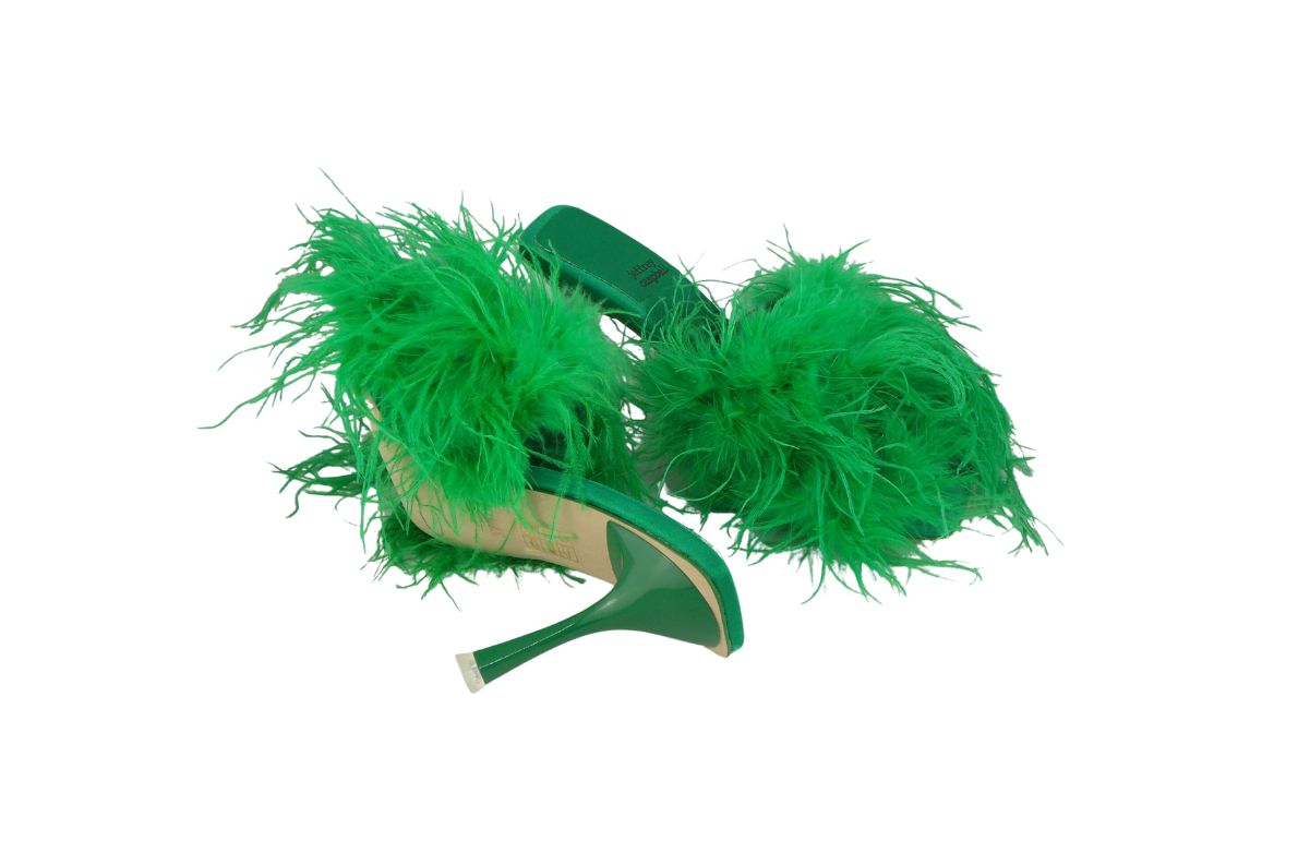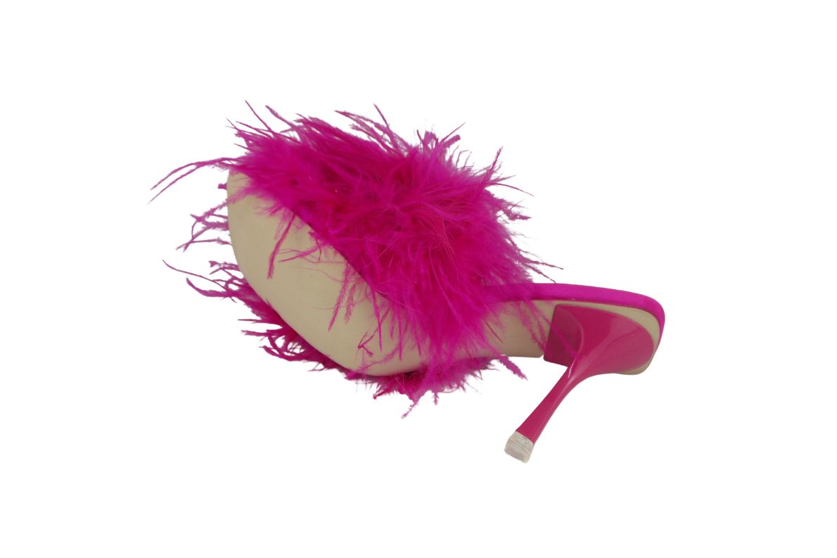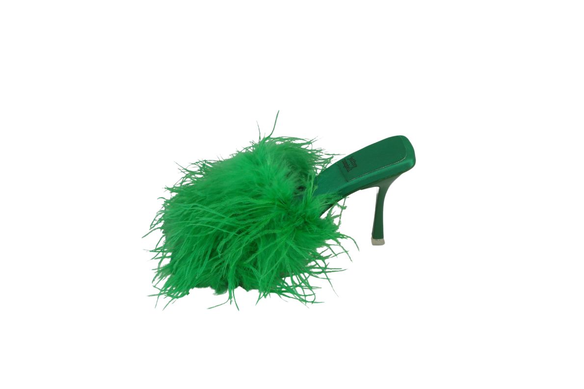 Sabot con tacco Rivestito in piume vere