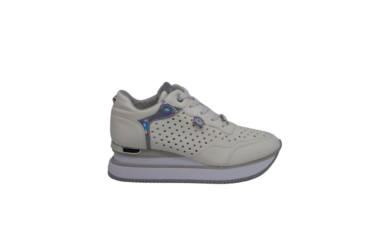 Perfetta per i casual look estivi, la sneaker firmata Apepazza, realizzata in pelle con dettagli traforati,