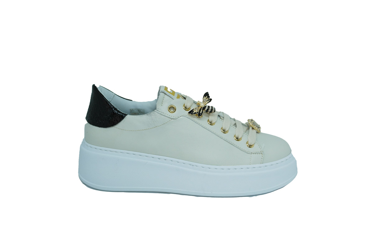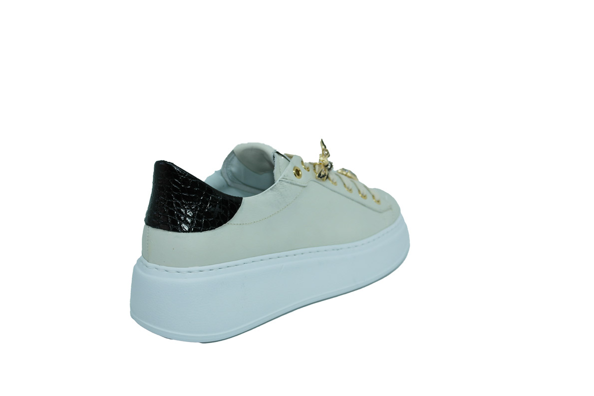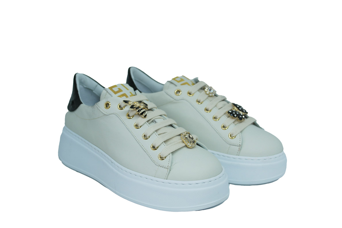 Sneakers in Pelle Bianca con Banda Nera e Gioielli