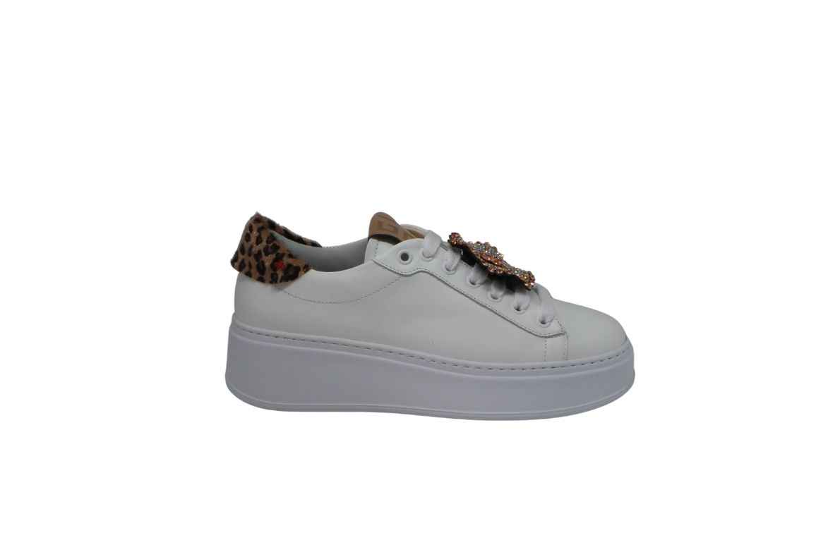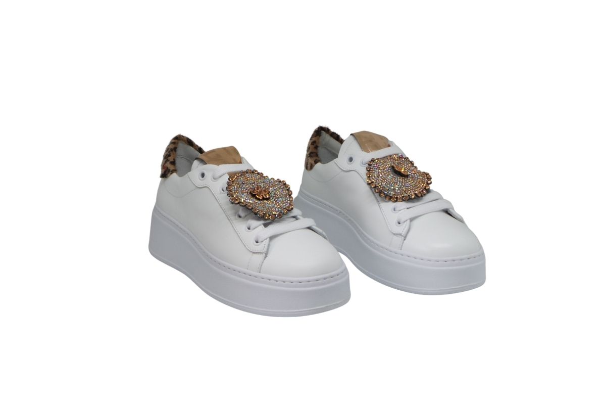 Molto originale la sneakers in pelle con gioiello strass
