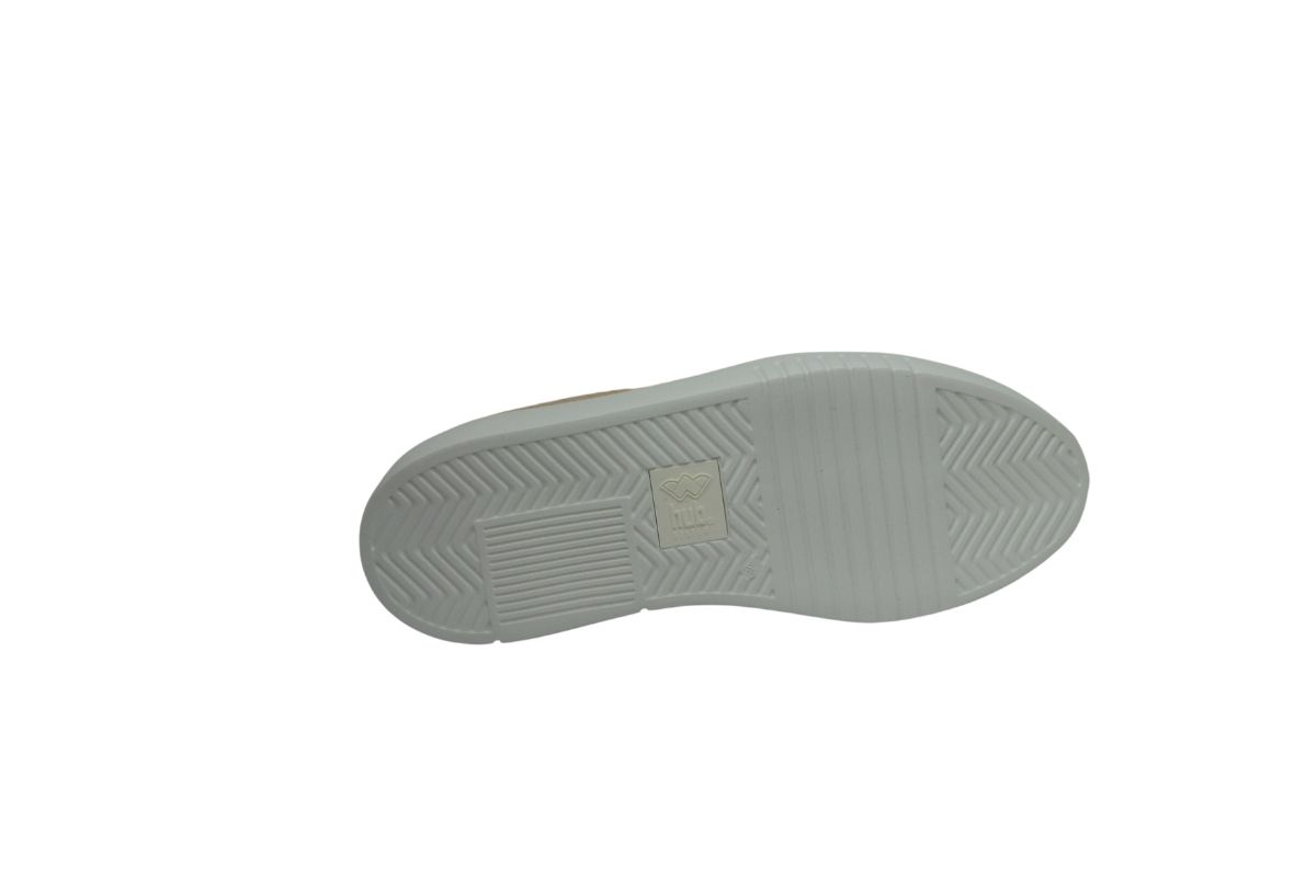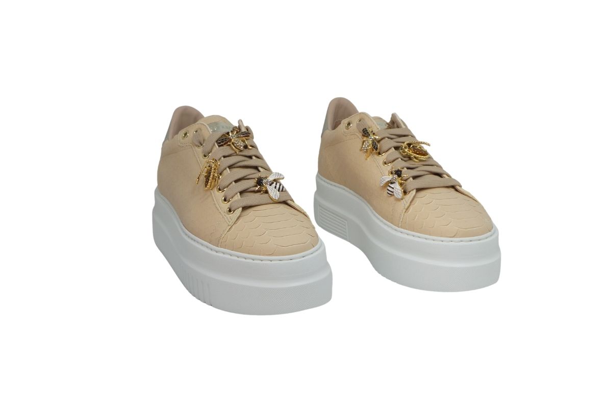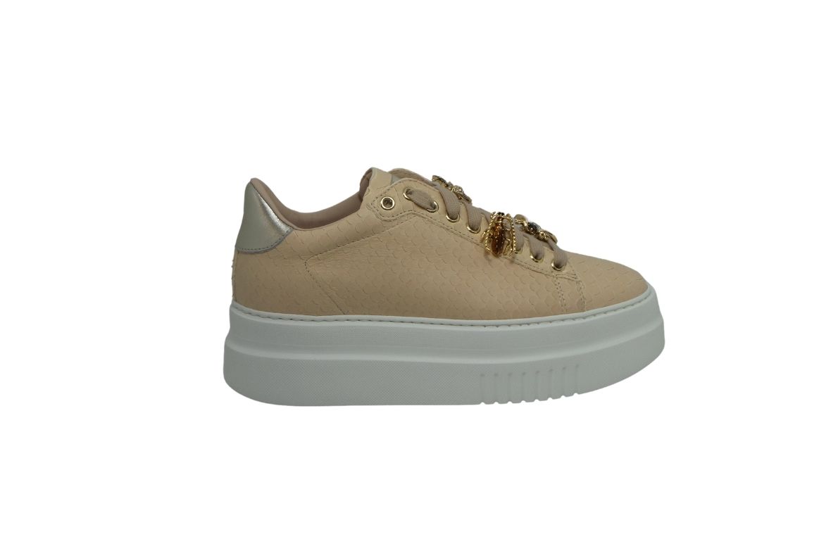 Comodissima la sneakers in pelle martellata color nude