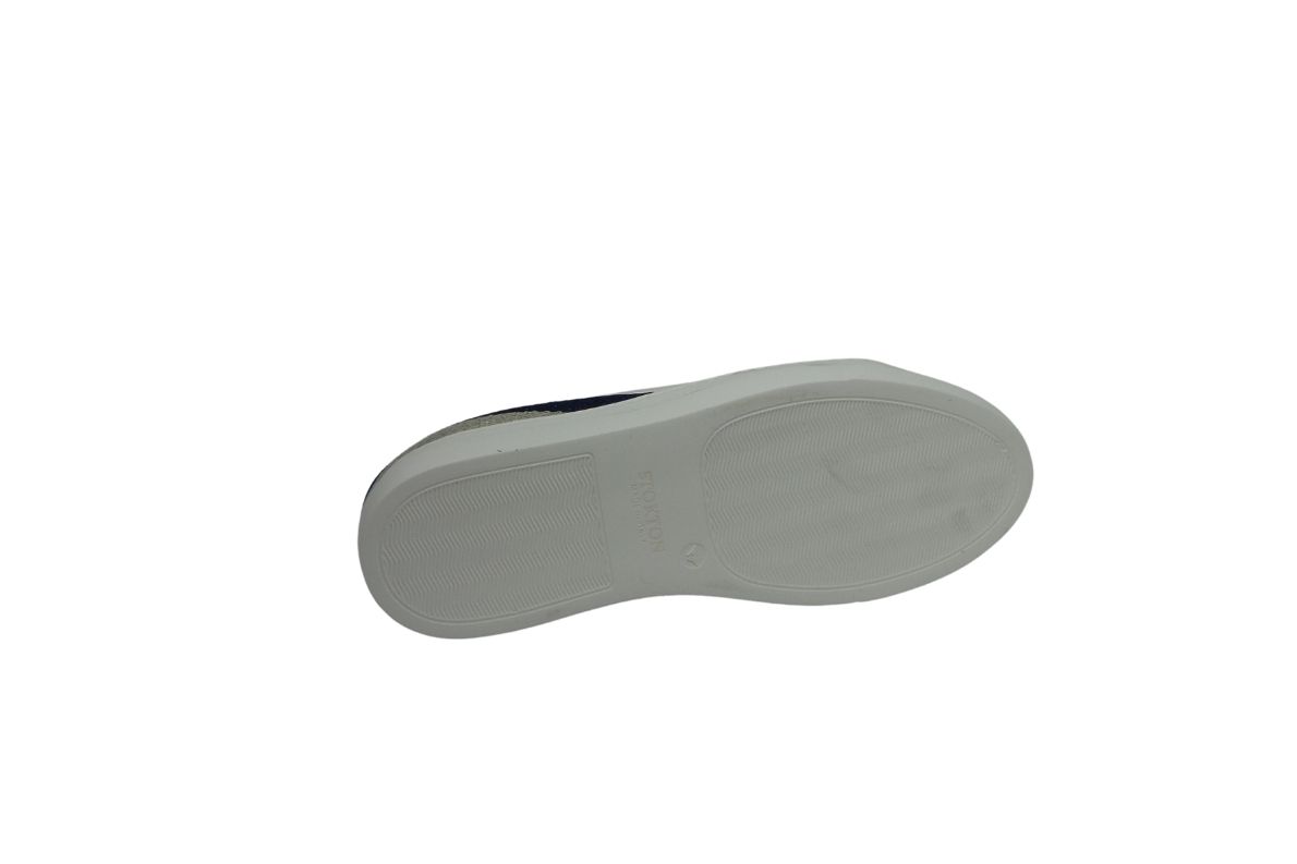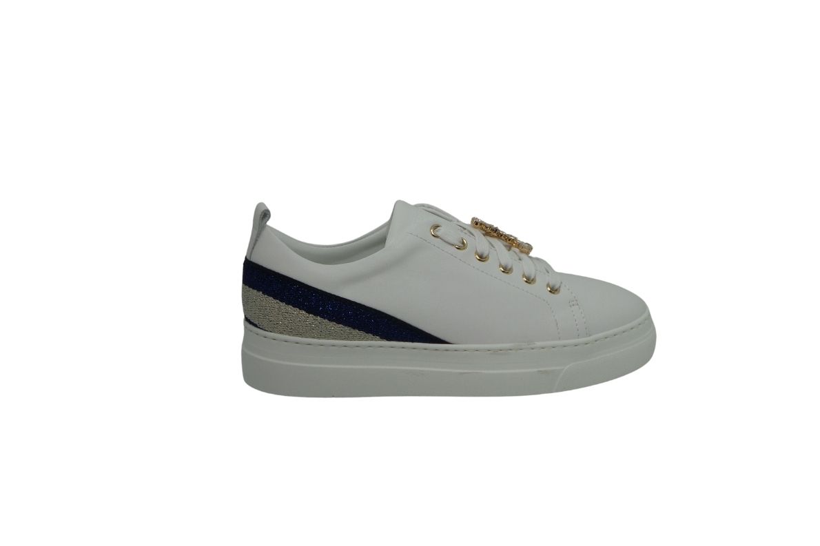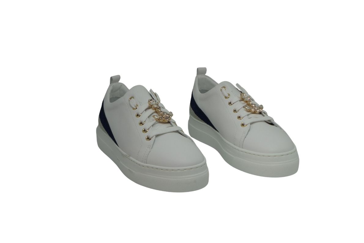 Allacciata a sei fori con lacci bianchi e fori con bordo dorato