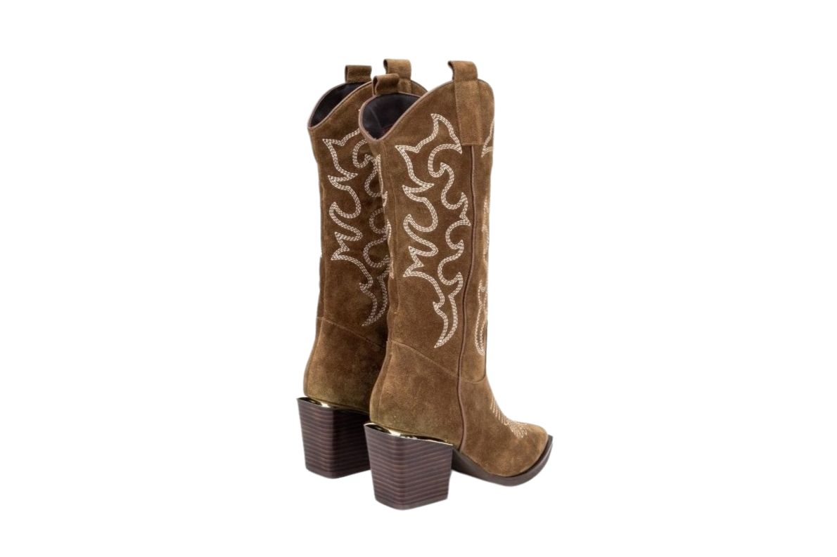 Stivale per donna in stile “Old West Texano” con calzata facile sopra la caviglia, costruito in materiale pregiato in pelle e tacco robusto e resistente.