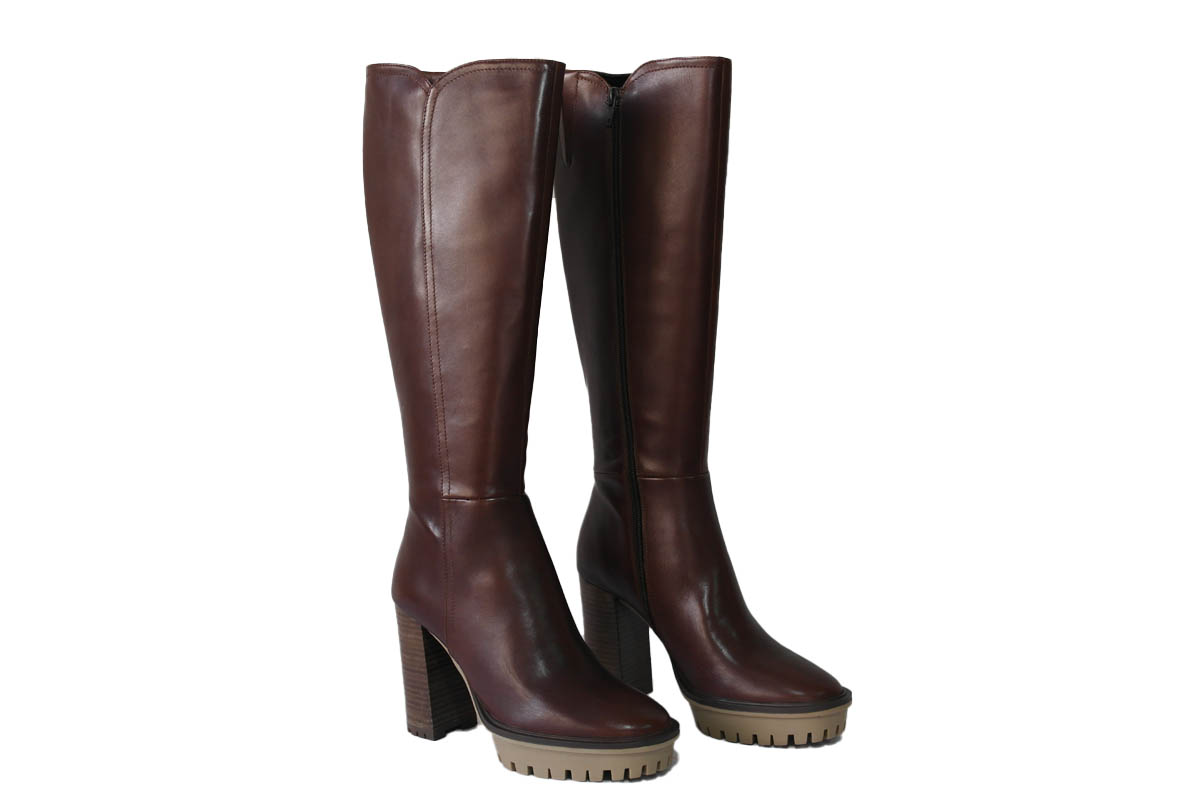 La silhouette solida e robusta degli stivali Tep Alea è slanciata da alto tacco spesso e plauteau carrarmato