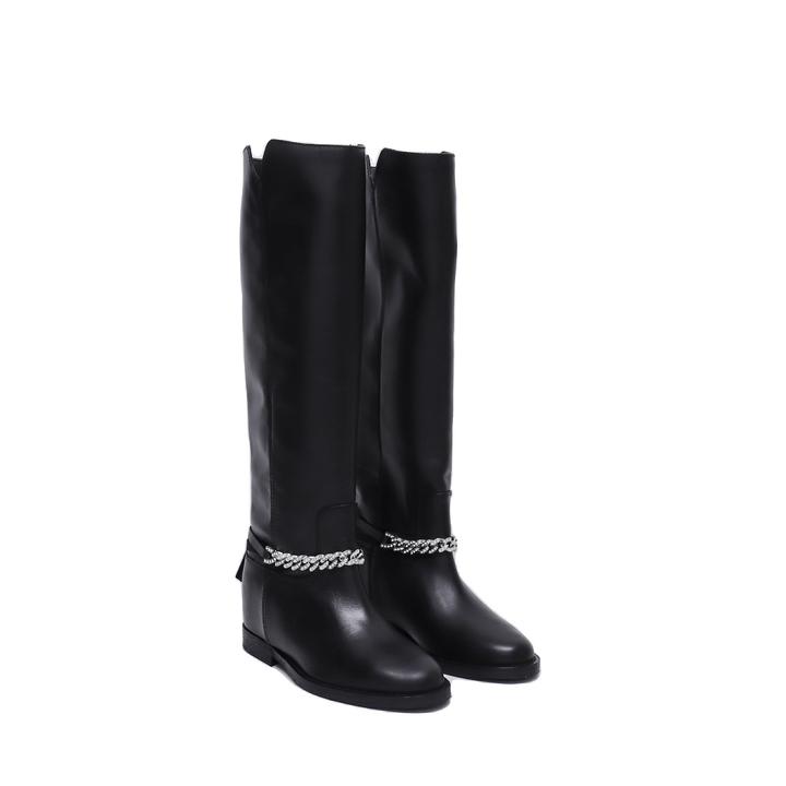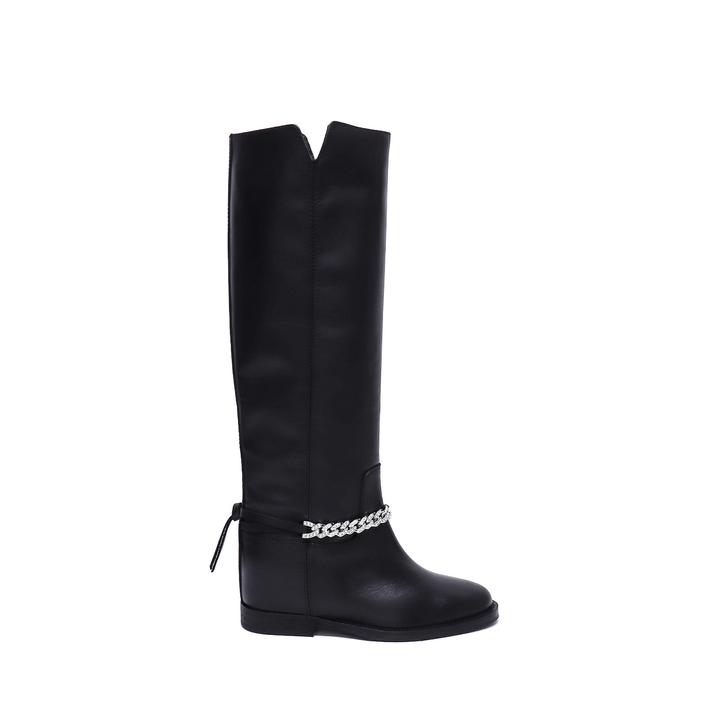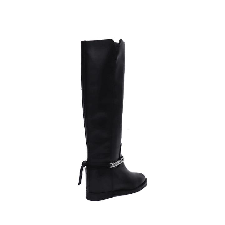 Stivale in Pelle Nero con Catena Strass Removibile e Zeppa Interna