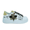 La suola esterna con particolare cucitura bluette è in gomma bianca alta 4,4 cm