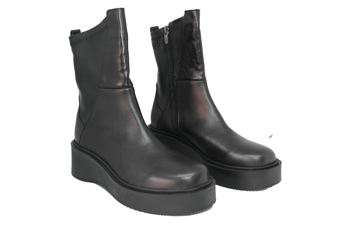 Stivaletto in Pelle con Cerniera Nero e Bianco