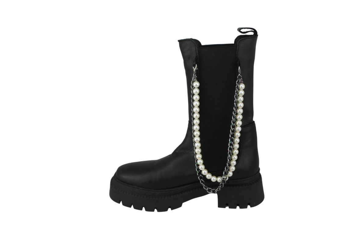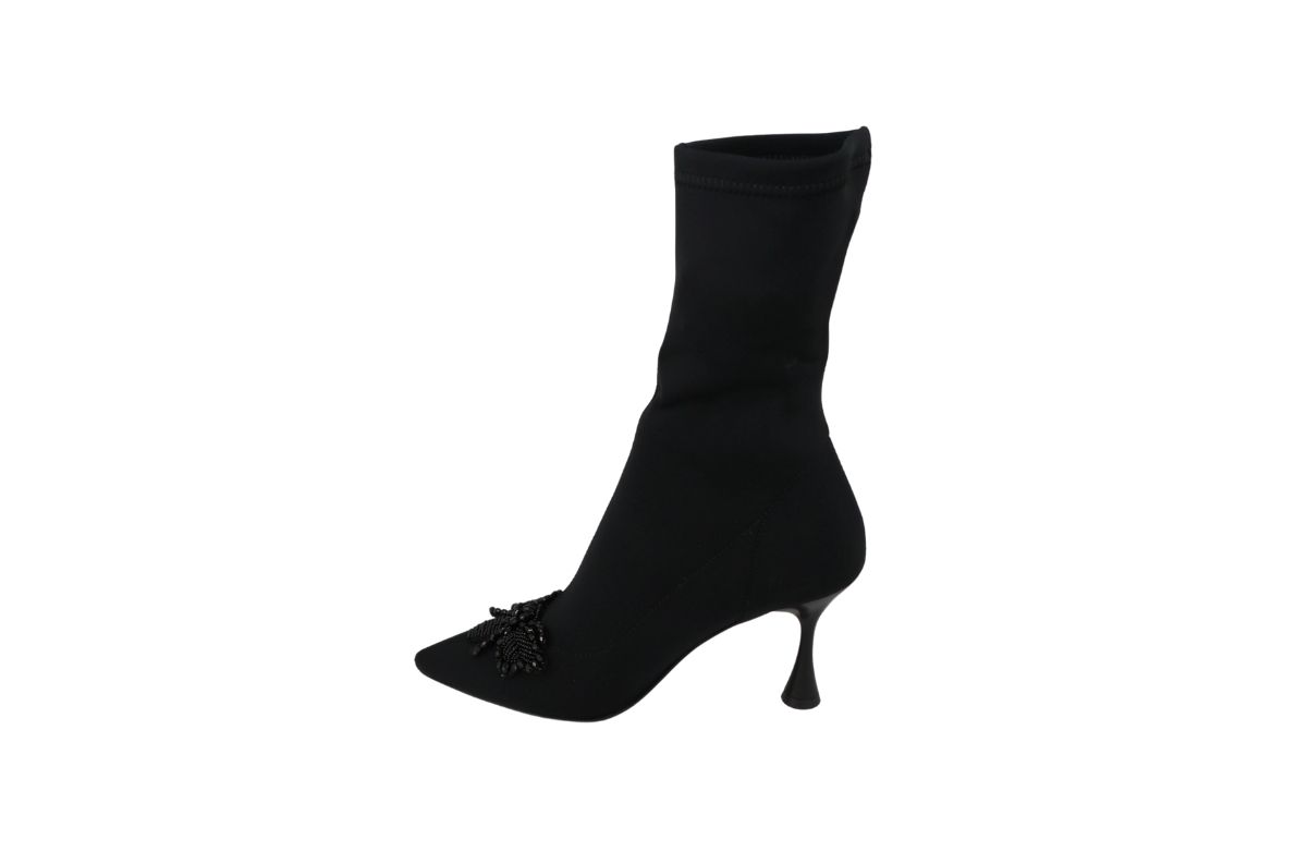Stivaletto per donna in lycra, con la punta sfilata e u  accessorio in punta. Il Tacco è verniciato e fondo in tunit. Bellissimo, da indossare con regolar fit.