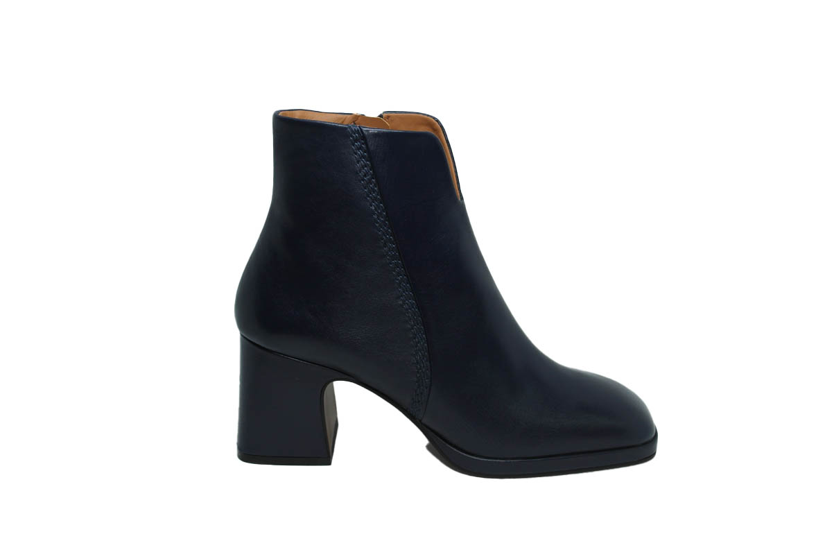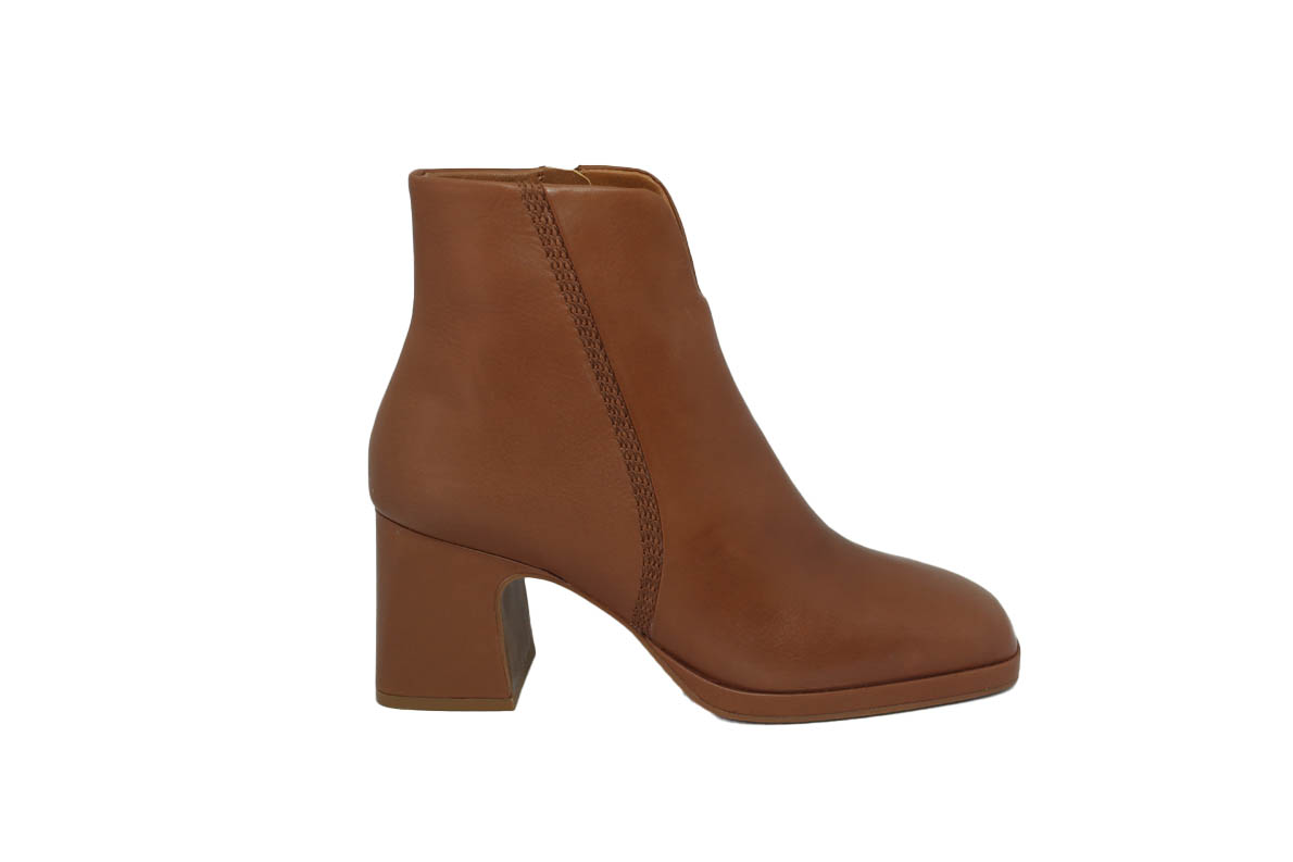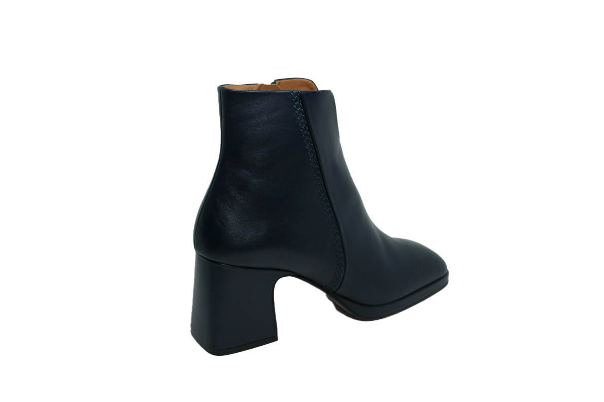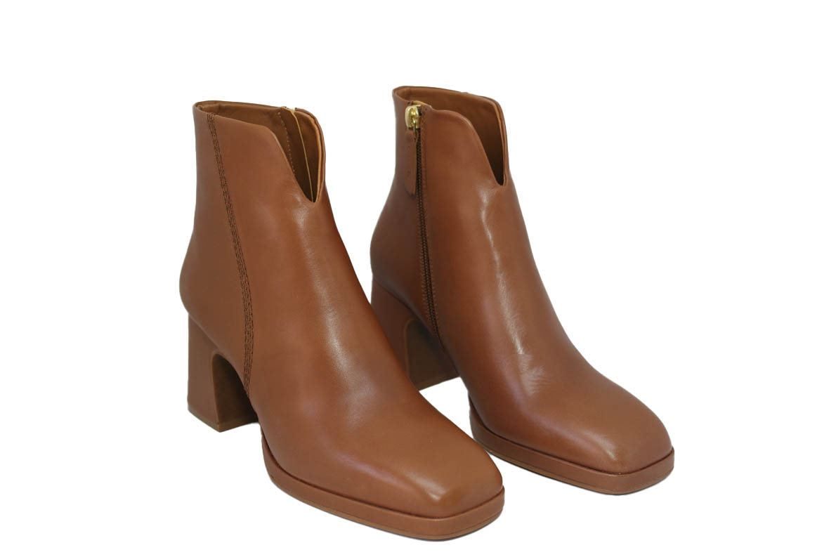Tronchetto in Pelle con Punta Squadrata Cuoio e blu